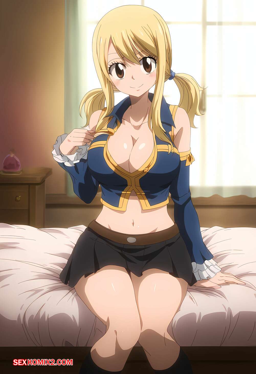 Порно комикс Lucy Heartfilia Season 2 NTR. Waifu Perfection AI Горяча блондинка была очень возбуждена и решила повеселиться со своим темнокожим дружком. Девушка разделась и отсосала большой хуй парня, после чего дала ему себя выебать и кончить в нее.