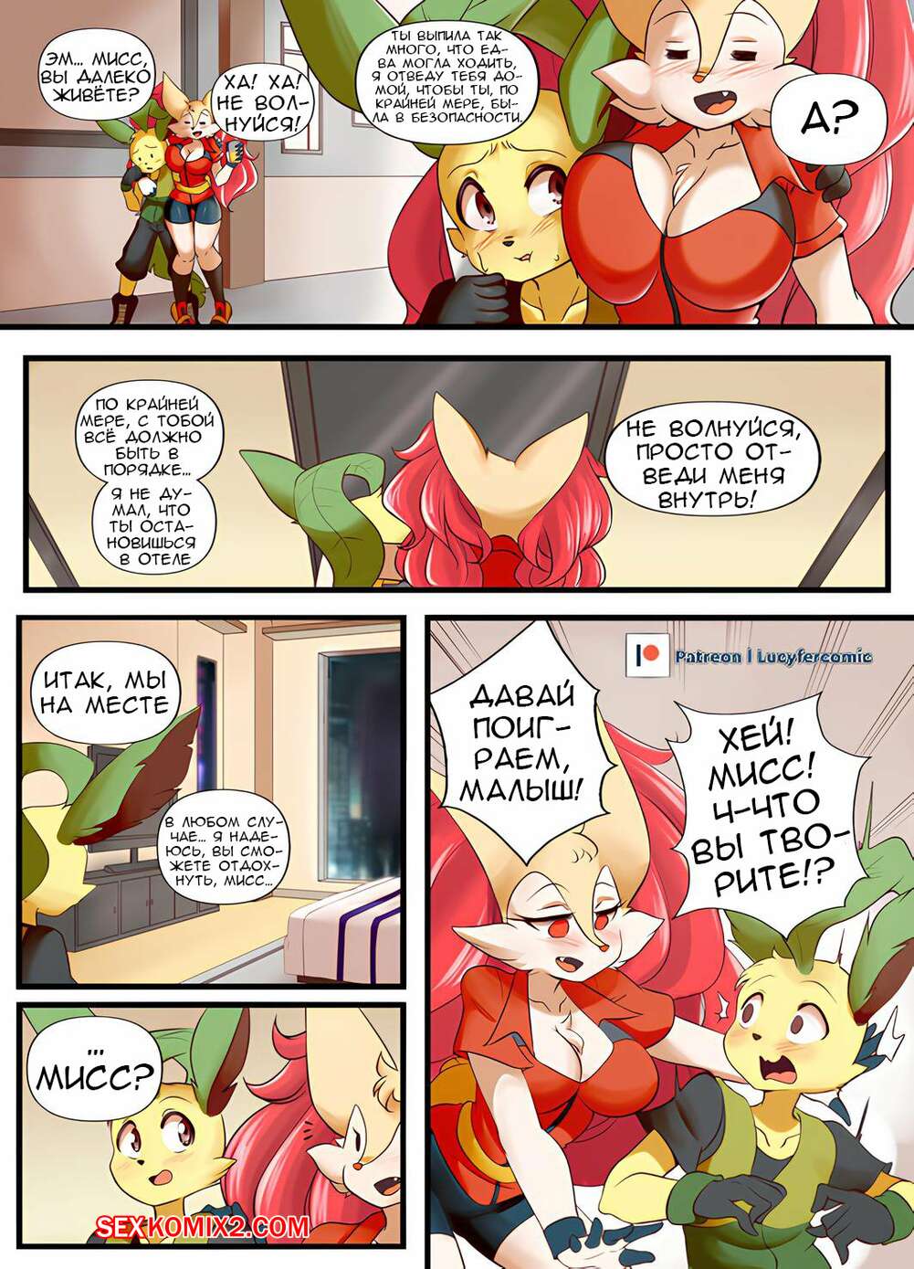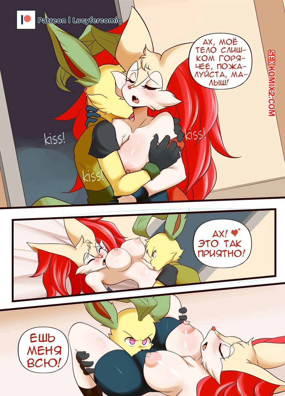 Порно комикс Pokemon. Брэй и Кайто. Bray x Kaito. Lucyfercomic Горячая красотка Брэй была очень возбуждена и решила повеселиться со своим дружком. Она разделась и возбудила парня шикарным телом, после чего дала ему себя выебать.