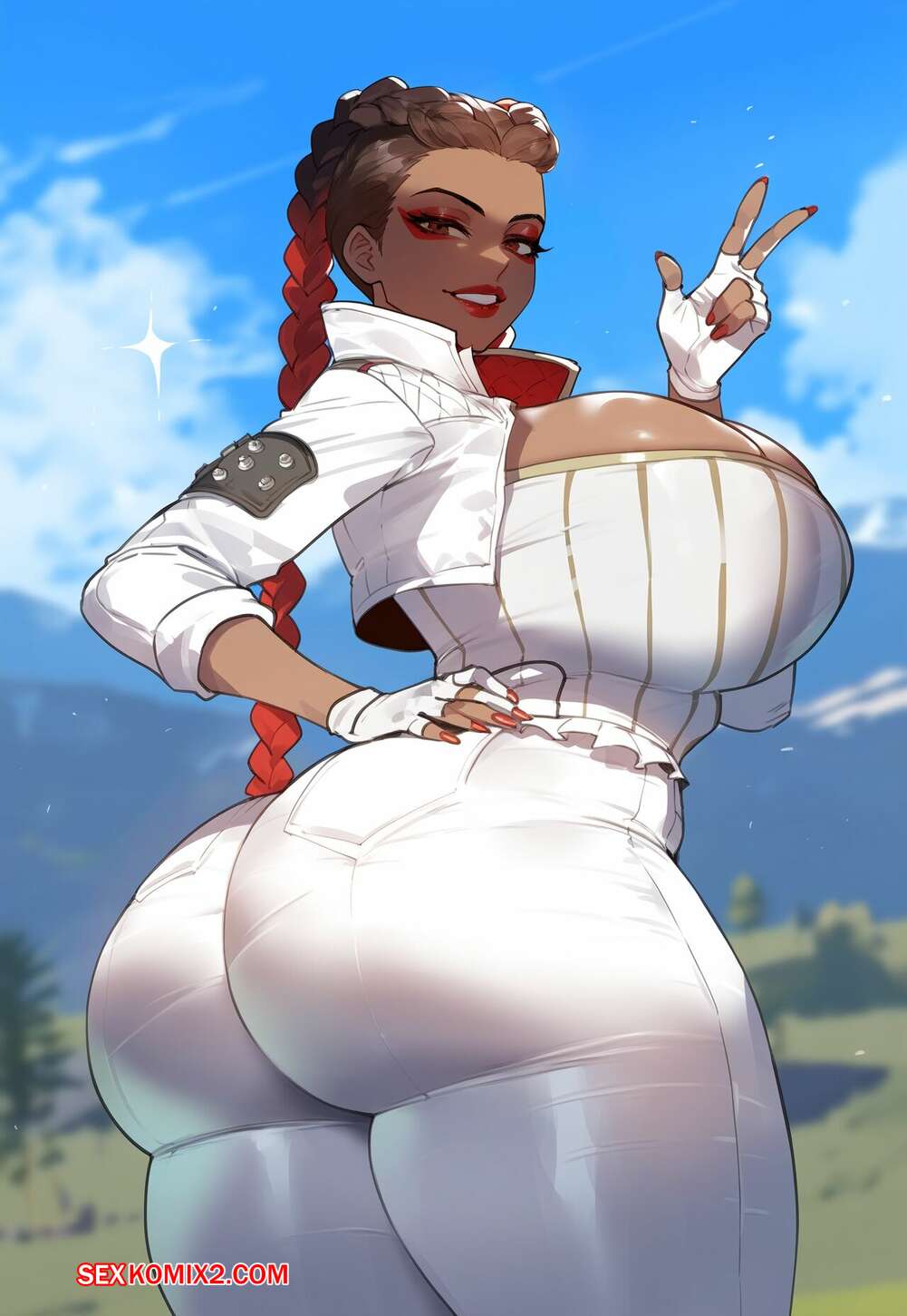 Порно комикс Loba. Apex Legends. Creamy Ai Горячая брюнетка решила повеселиться на пляже с темнокожим парнем. Она разделась и отсосала большой хуй паренька, после чего дала ему выебать свою пизденку.