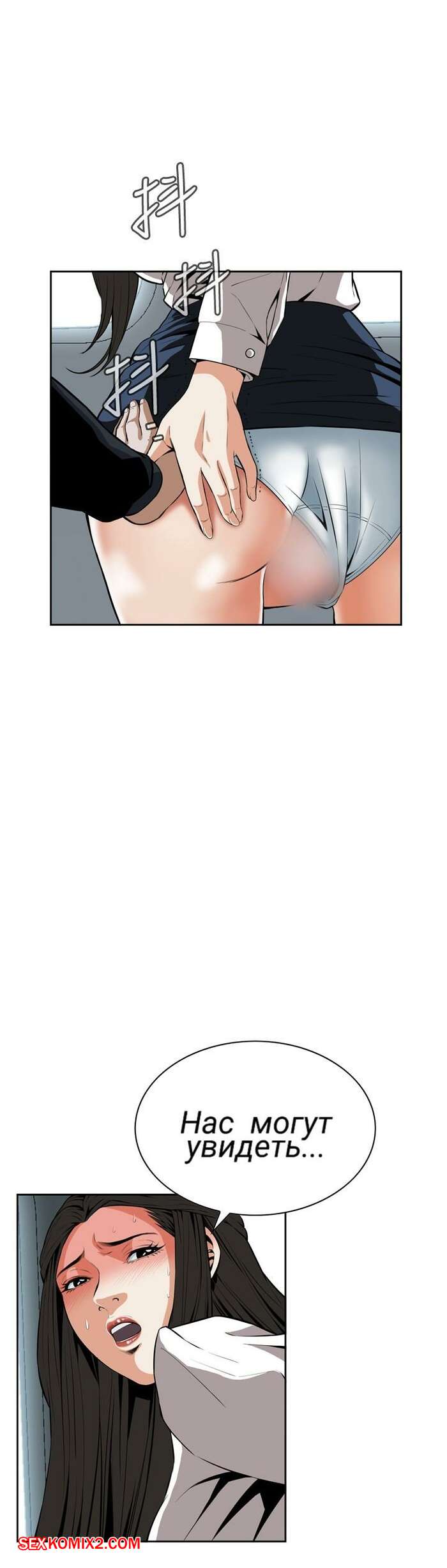 Порно комикс Бросить взгляд. Часть 22 и 23 и 24. Take a peek Горячая брюнетка ехала в вагоне метро и парень стал вновь до нее домогаться. Он стянул трусики с девушки и стал ласкать ее пизденку, после чего вставил в нее свой член и хорошенько выебал соседку.