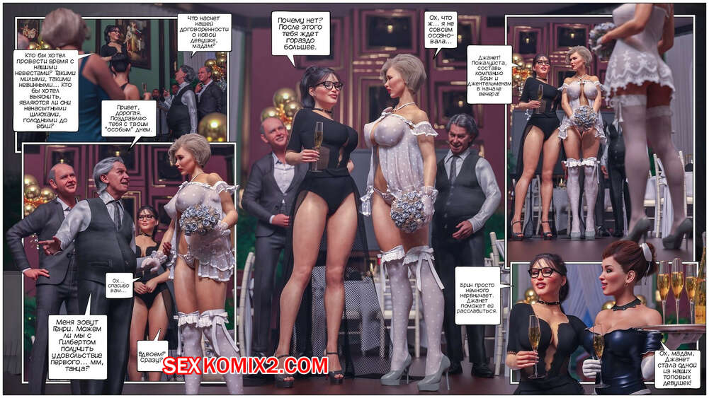 Порно комикс Дом мадам Маделон. Часть 4. The House of Madam Madelon. Tab109 Мадам Маделон устроила особую ночь невест и пригласила богатых гостей. Брин пришли, чтобы провети свою первую ночь вместе с Джанет и заняться незабываемым сексом.