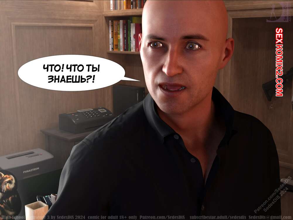 Порно комикс Удовольствие от старшей школы. Часть 3. High School Pleasure. SedesDiS. Две горячие красотки оказались в подвале, где их окружили темнокожие парни. Они веселятся с девушками, пока их босс наверху проводит встречу с очередной ученицей.