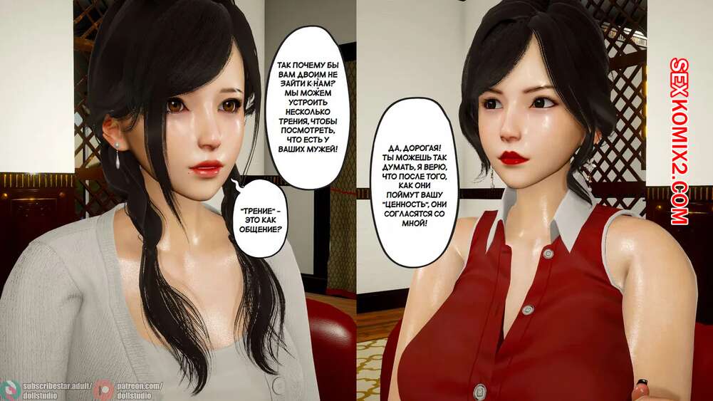Порно комикс Обязанность жены. Wifes duty. Dollstudio. Две горячие брюнетки с шикарными телами отправляются на встречу с богатыми мужиками. Красотки разделись и отсосали хуи стариков, после чего дали им себя выебать во все дырочки.