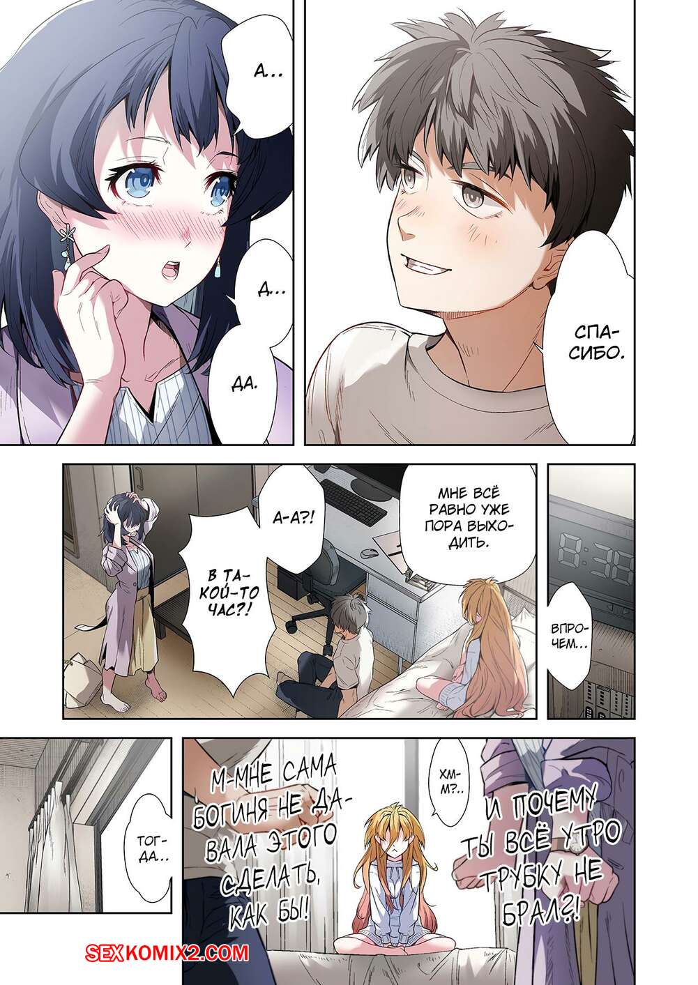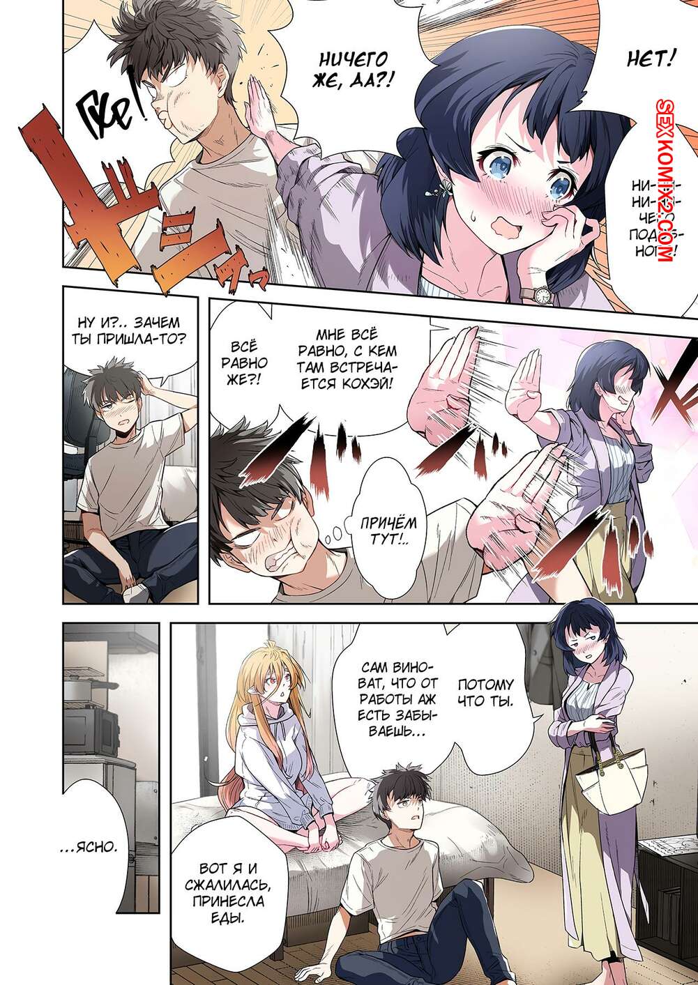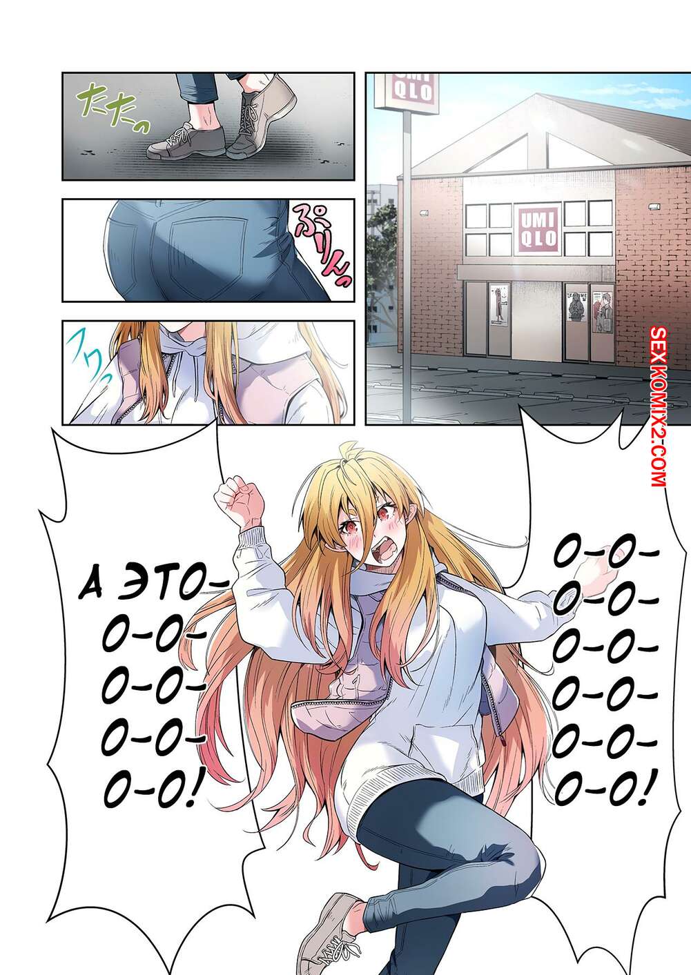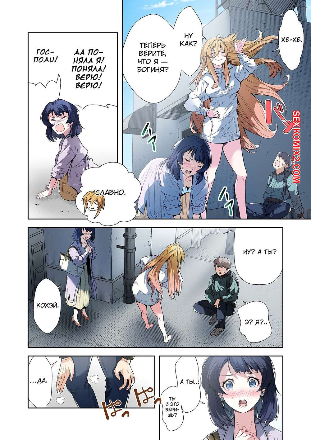 Порно комикс Левая рука богини. Отдайся же своей любовнице. Часть 3. MUGENUP Горячая блондинка была очень возбуждена и решила повеселиться со своим дружком. Она встала на колени и стала ласкать большой хуй парня, желая насладиться его спермой.