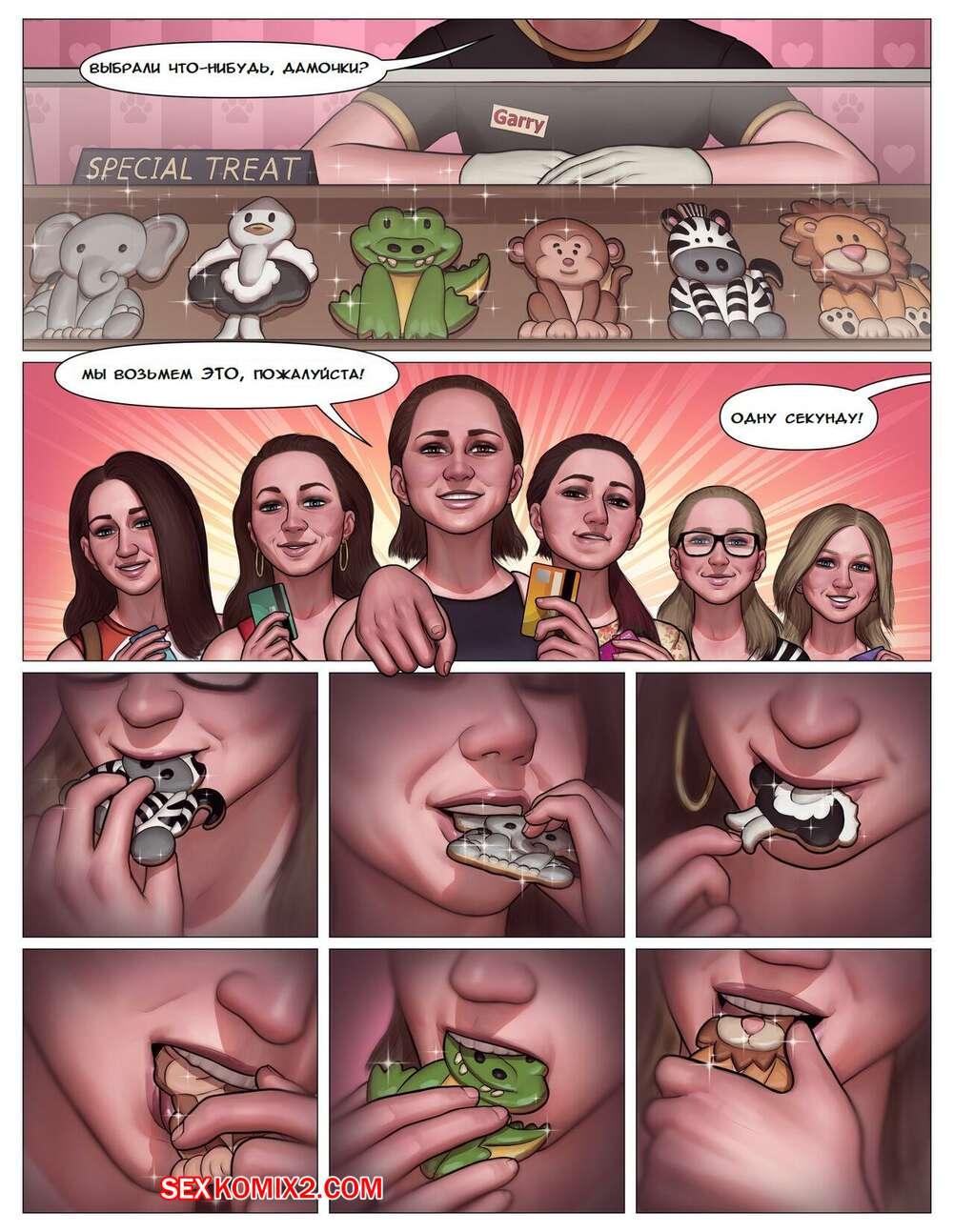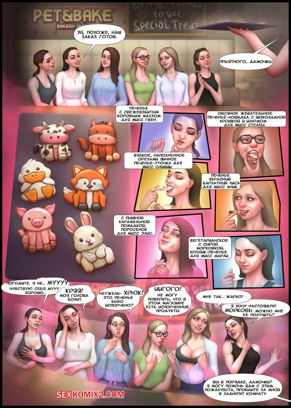 Порно комикс Pet and Bake. Africa Edition. PickyRoman Горячие подруги съедают необычное печенье, которое меняет дела девушек и возбуждает их. Девушки соблазняют парней шикарными телами, после чего дают им выебать себя во все дырочки.
