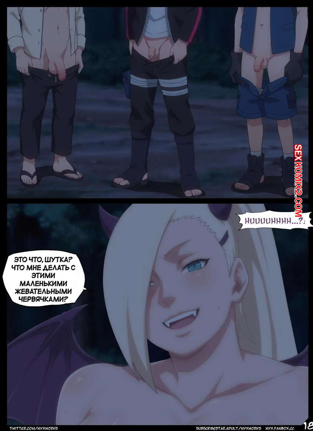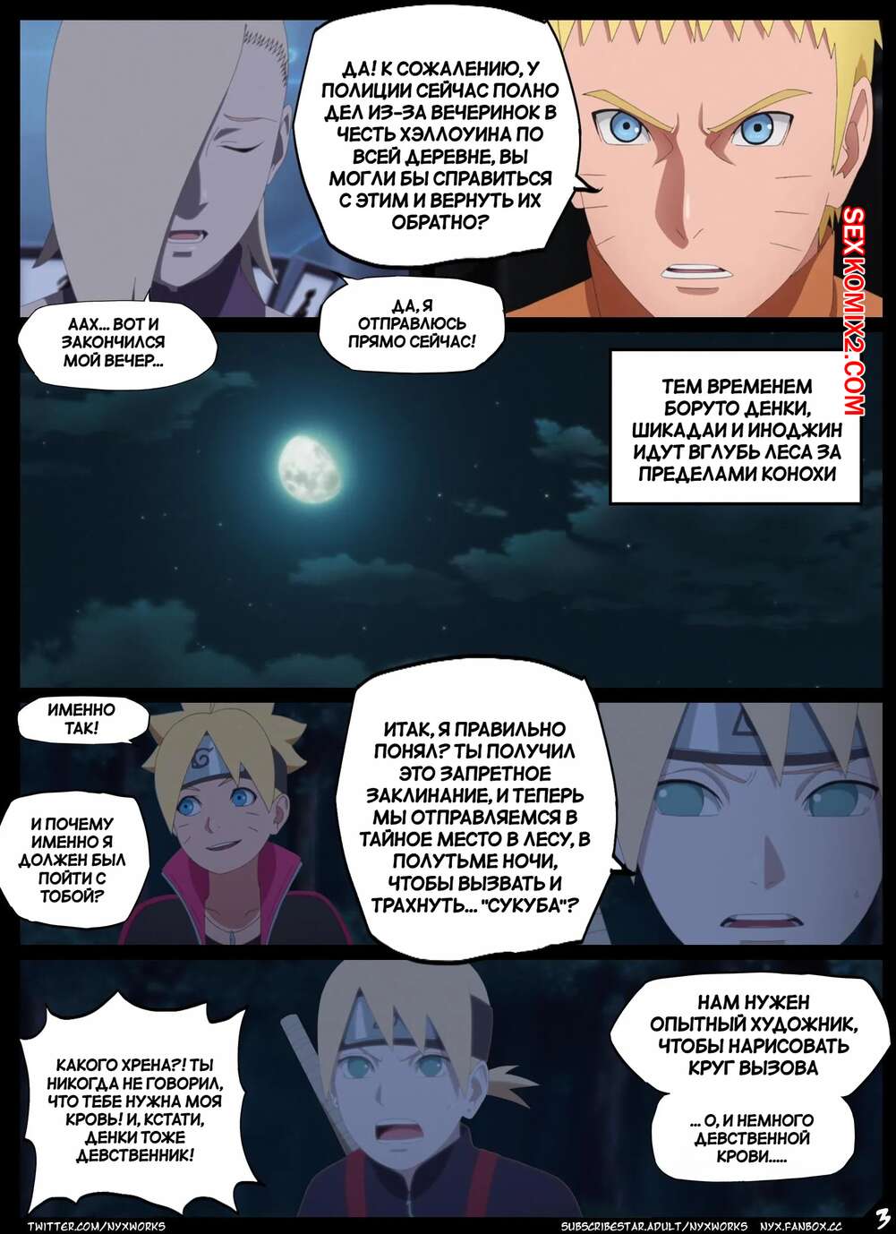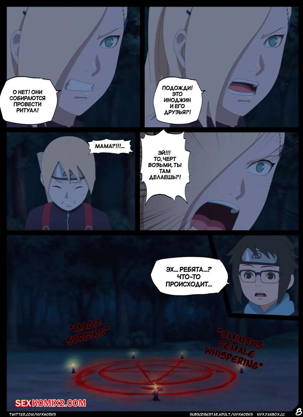 Порно комикс Наруто. Ночь Ритуала. Night of the Ritual. nyx. Друзья ниндзя собрались поздней ночью для проведения ритуала. Они призвали сексуальную девушку демона для секс развлечения.