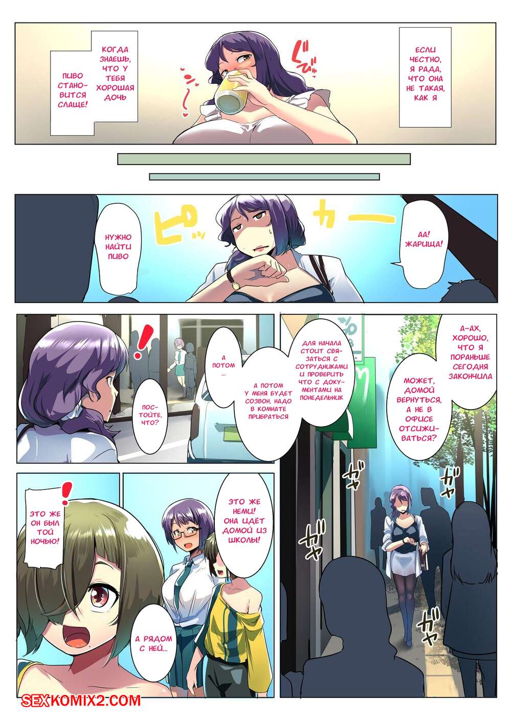 Порно комикс Оякодон с друзьями. Oyakodon with Friends. Muneshiro Горячая милфа с шикарным телом была очень возбуждена и решила повеселиться со своей дочерью и ее новым парнем. Красотки разделись и отсосали большой хуй парня, после чего дали ему себя выебать.