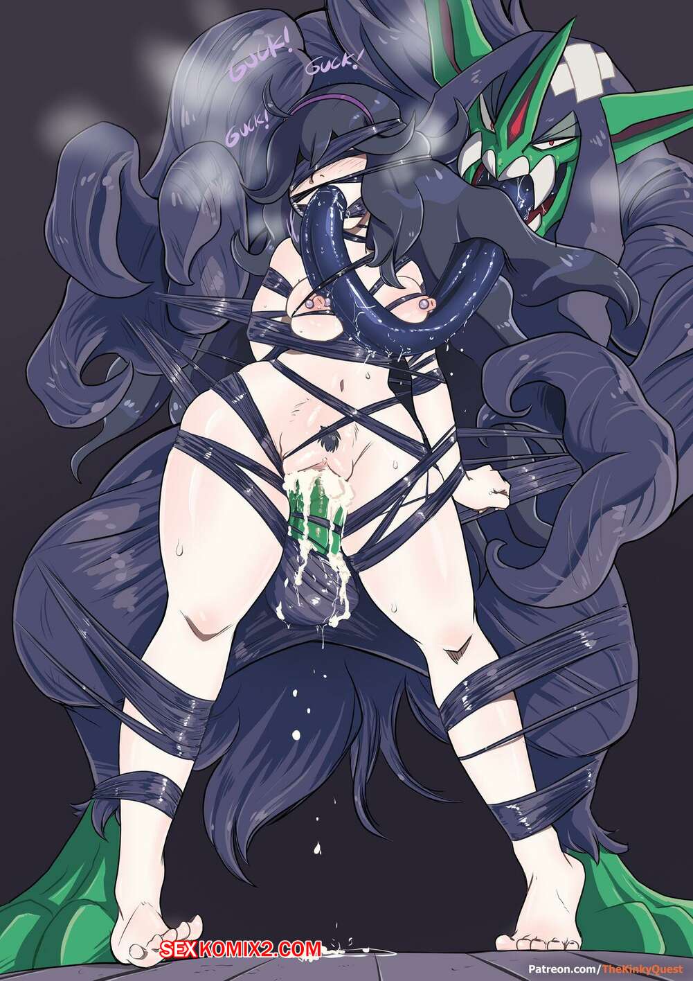 Порно комикс Pocket Monsters. Хекс Маньяк. Hex Maniac. TheKinkyQuest Монстр с тентаклями схватил сексуальную брюнетку, желая с ней повеселиться. Он разорвал одежду девушки и хорошенько выебал ее во все дырочки, доставив ей удовольствие.