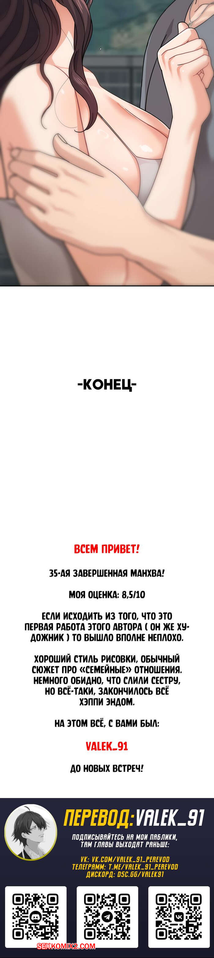 Лолох2024-11-02А теперь и вправду подошёл конец всей этой увлекательной истории,жалко,что она продлилась так мало... Спасибо большое переводчику,за данный комикс. Всем удачного чтения и дрочки.