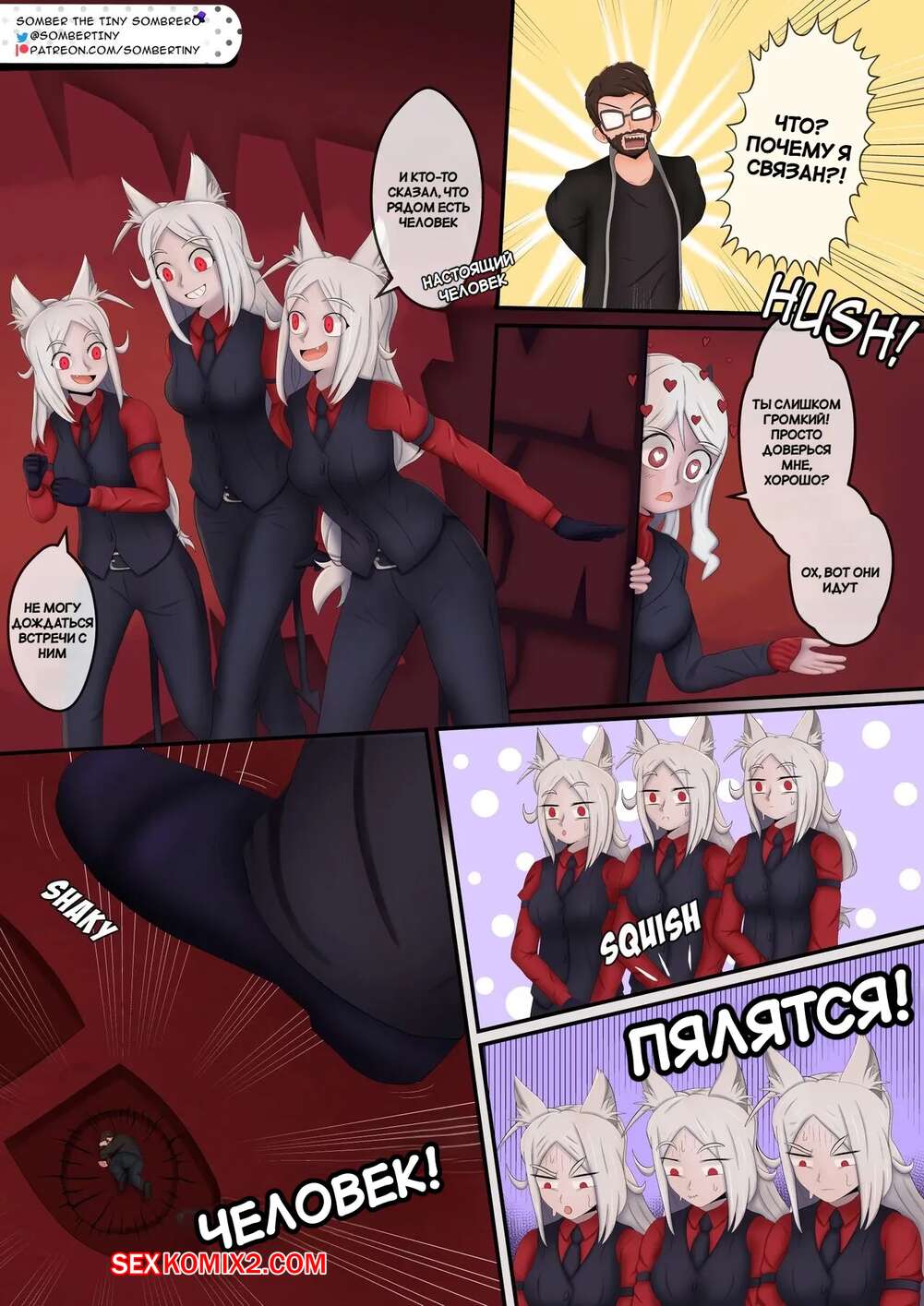 Порно комикс Helltaker. Крошечный. TinyTaker. somber tiny. Горячие блондинки уменьшили парня в размерах и решили с ним повеселиться. Красотки разделись и засунули парня себе в пизденку, после чего стали тереться друг о дружку, получая невероятное удовольствие.