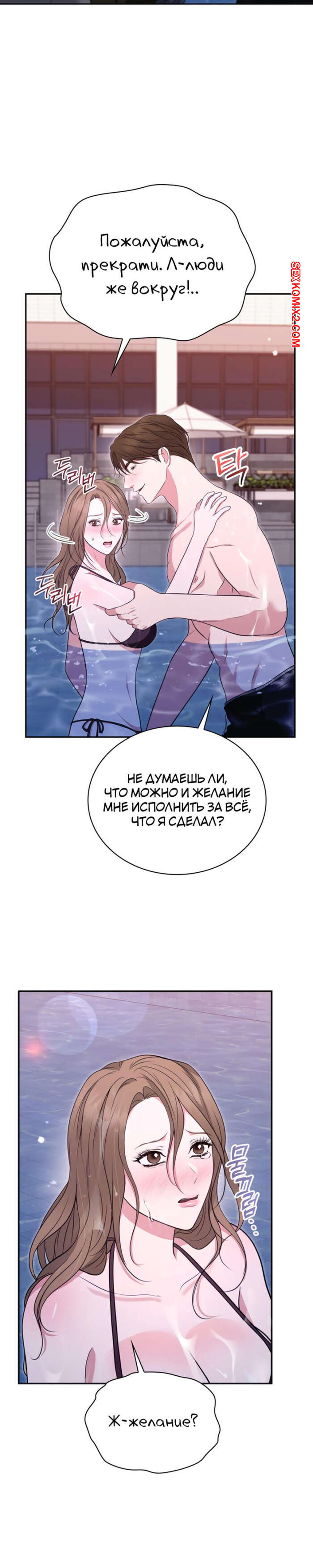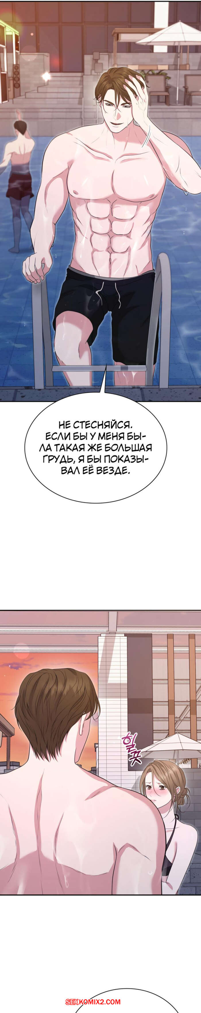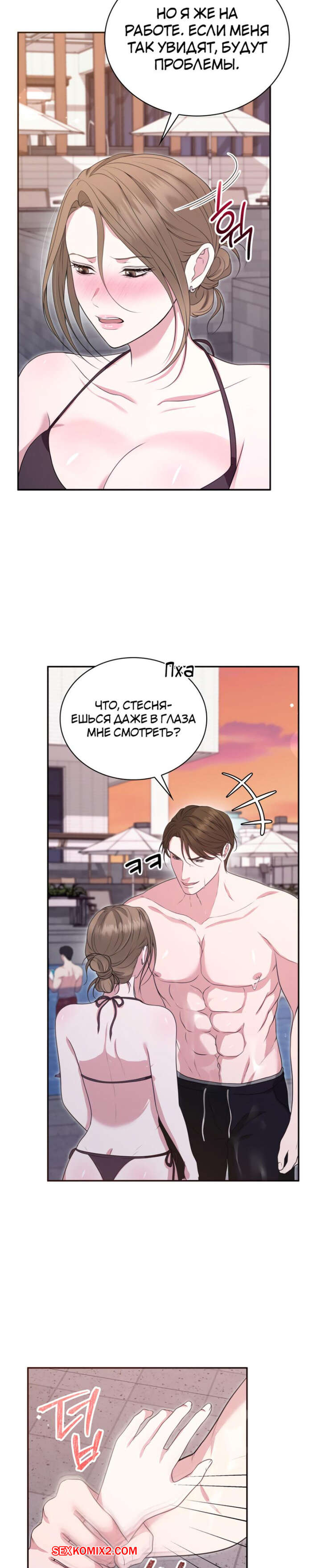 Порно комикс Полюби меня грубо. Часть 13 и 14 и 15. hambulo daehaejineun chwihyang Во время купания в бассейне парень был очень возбужден и решил повеселиться с сексуальной брюнеткой. Он стал ласкать ее пизденку, желая возбудить девушку и трахнуть ее.