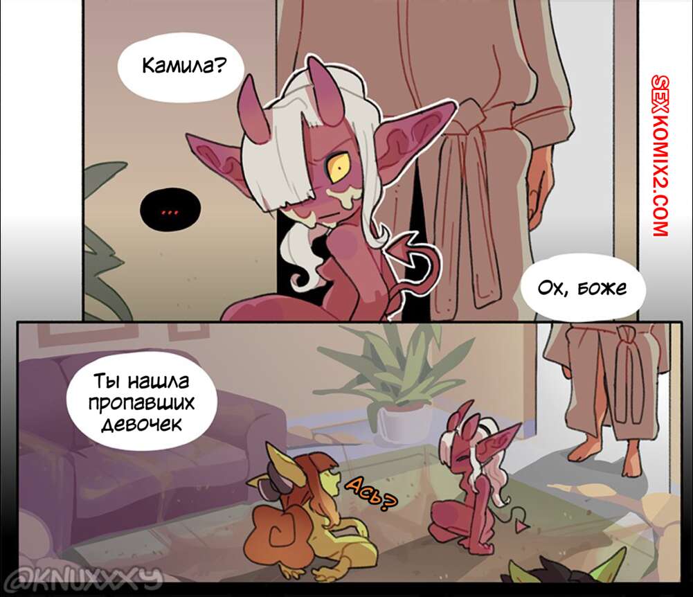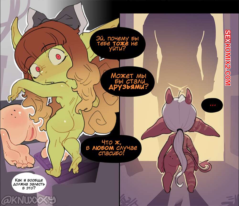 Порно комикс Гоблинский энергетик. Часть 2. Knuxxxy Две девушки вновь выпили энергетик и превратились в гоблинов. Красотки были очень возбуждены и стали ласкать друг дружку, после чего занялись страстной лесбийской еблей.