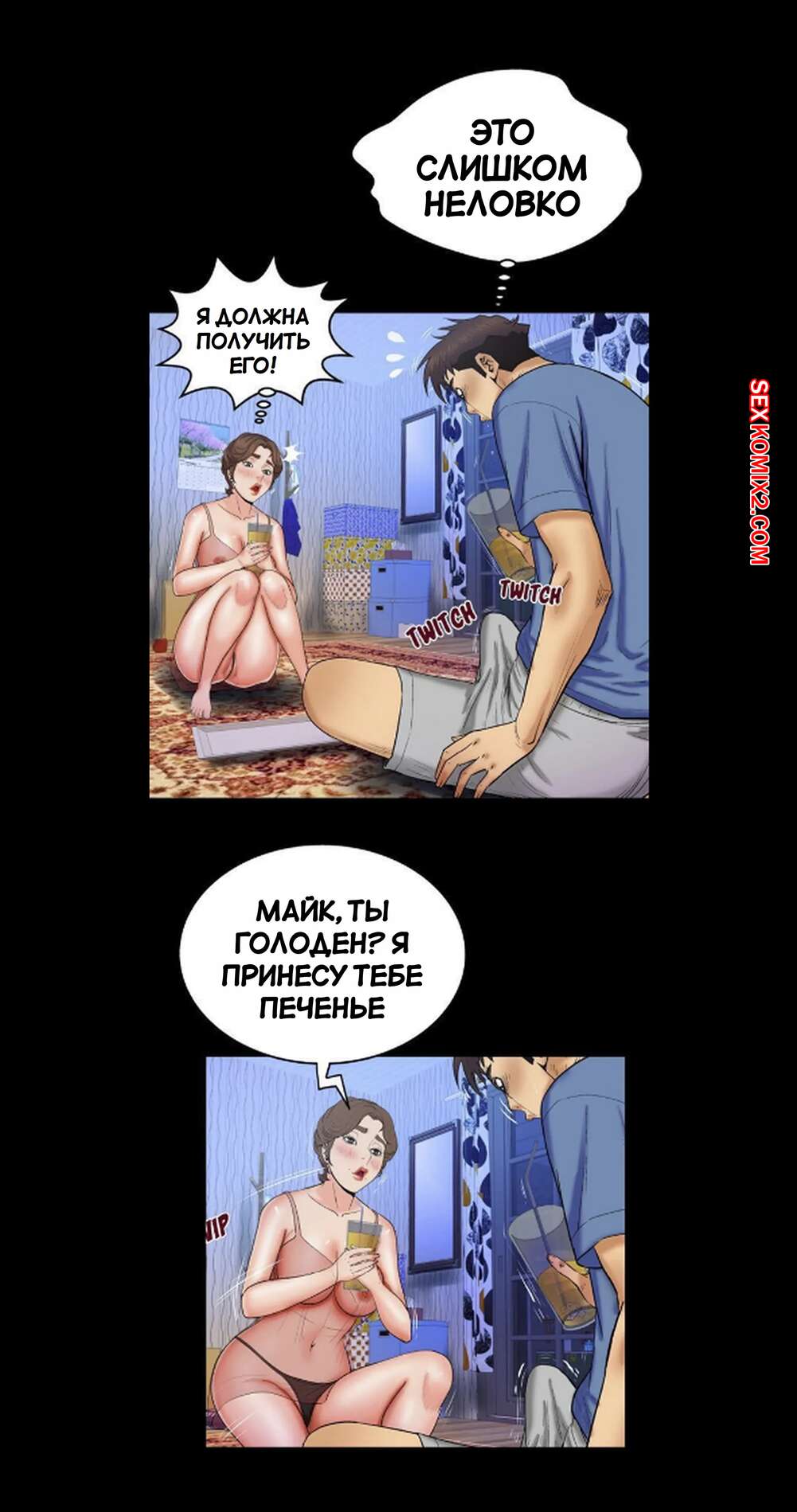 Порно комикс Моя тетя. Без цензуры. Часть 28. My Aunt. Toomics Горячая брюнетка увидела стояк своего дружка и сильно возбудилась. Красотка не смогла отвести взгляда от хуй парня, желая поскорее его отсосать и ощутить в себе.