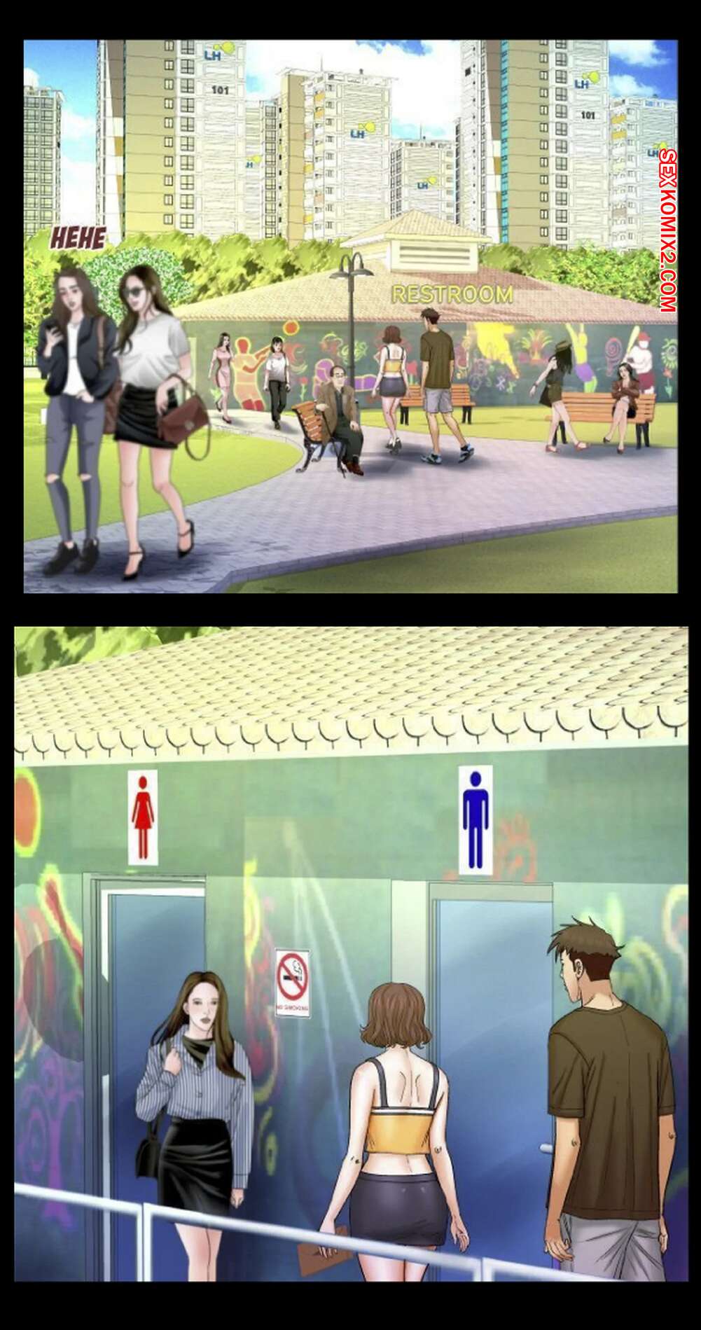 Порно комикс Моя тетя. Без цензуры. Часть 30. My Aunt. Toomics Во время прогулки парень с девушкой решили повеселиться. Они отправились в общественный туалет, где девушка отсосала хуй парня и дала ему выебать свою пизденку.