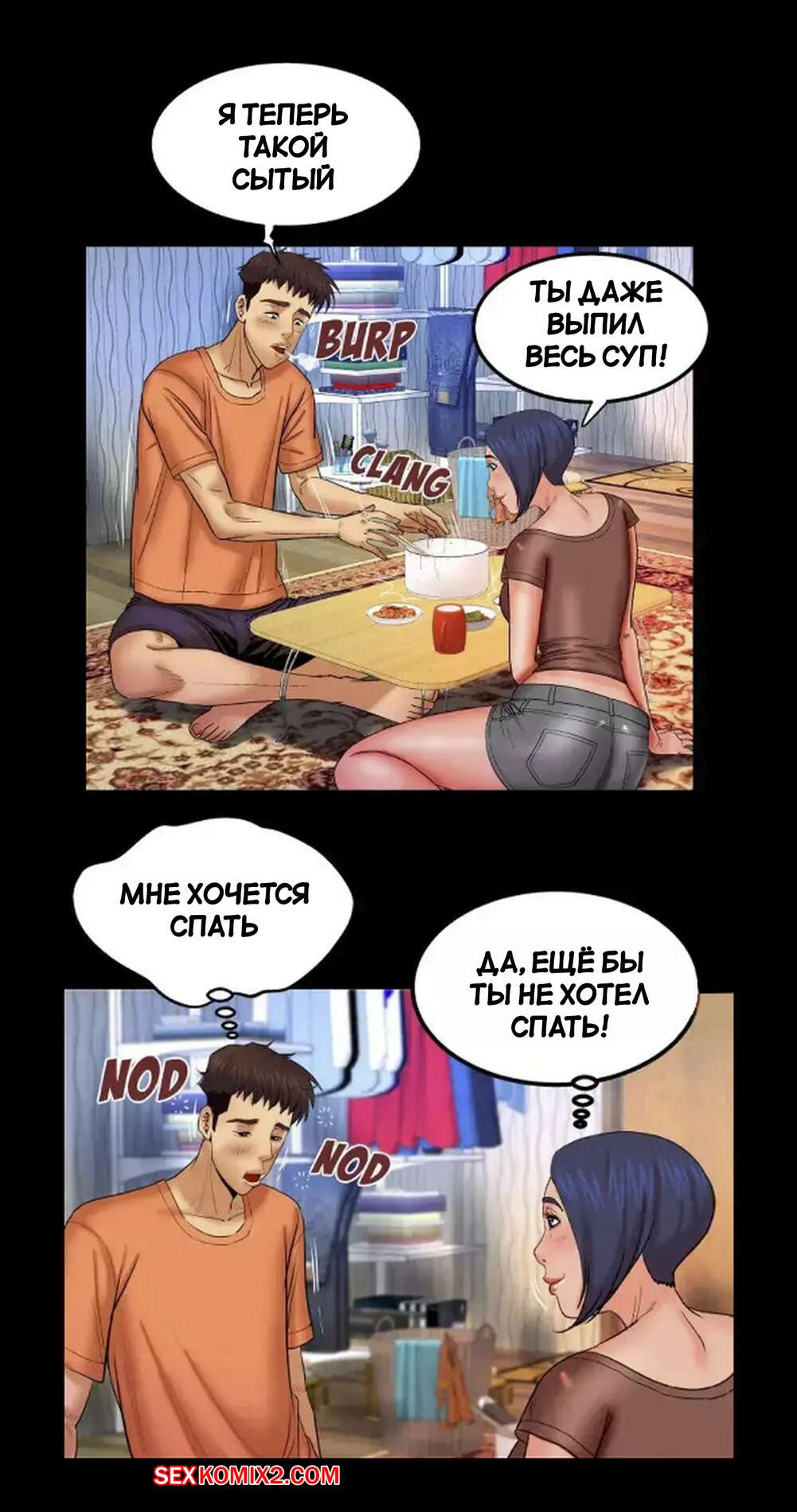 Порно комикс Моя тетя. Без цензуры. Часть 32. My Aunt. Toomics Горячая брюнетка затащила парня к себе в комнату, желая повеселиться. Она усадила парня на пол и оседлала его большой хуй, желая как следует насладиться и кончить.