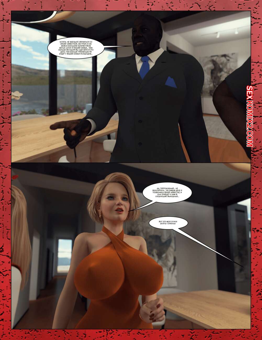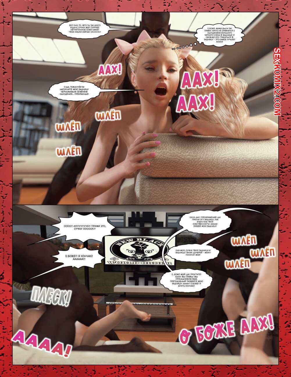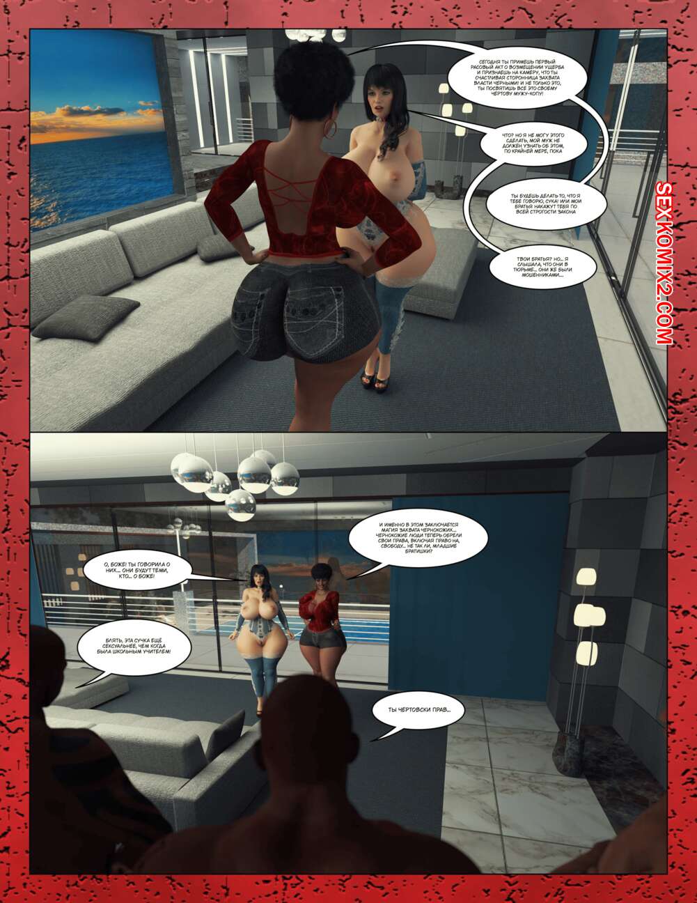 Порно комикс The Millers. Часть 3. Moiarte Темнокожие парни соблазняют горячих красоток своими огромными хуями. Они раздевают девушек и дают им отсосать свои члены, после чего хорошенько ебут их во все дырочки.
