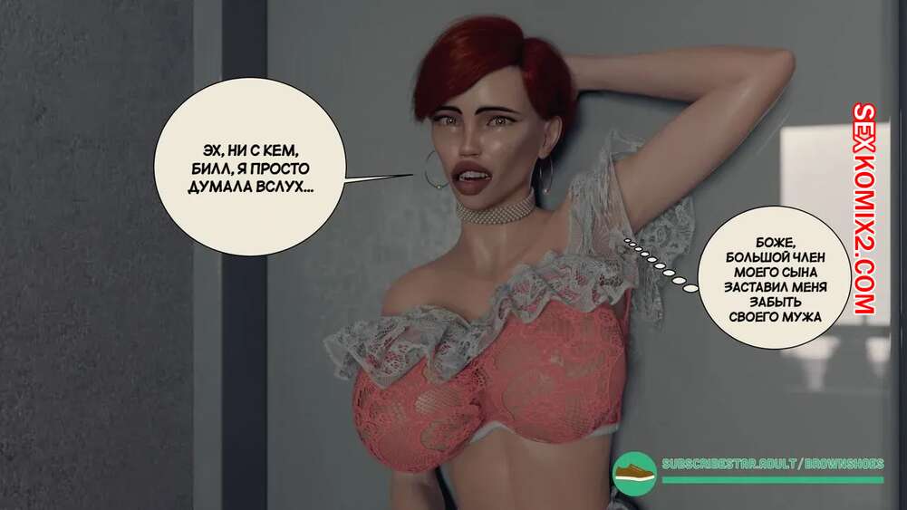 Порно комикс Черный дом. Часть 1. Blacked Home. Brown Shoes Рыжая милфа была поражена огромным черным членом своего приемного сына. Красотка пришла в комнату к парню и встала перед ним на колени, после чего стала у него отсасывать и дала ему кончить себе на лицо.