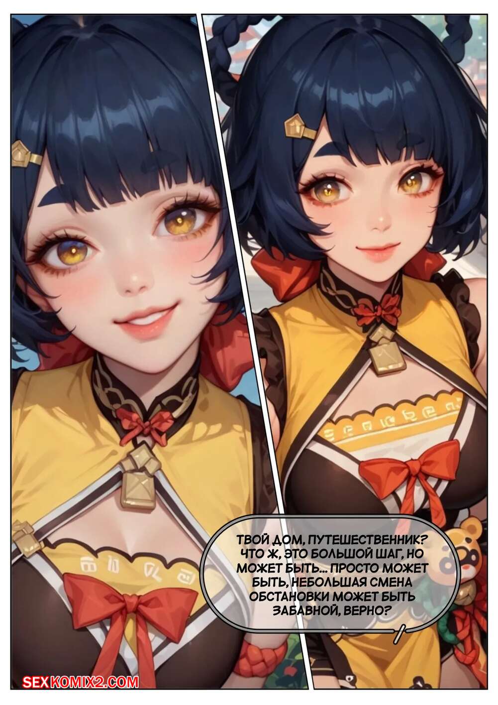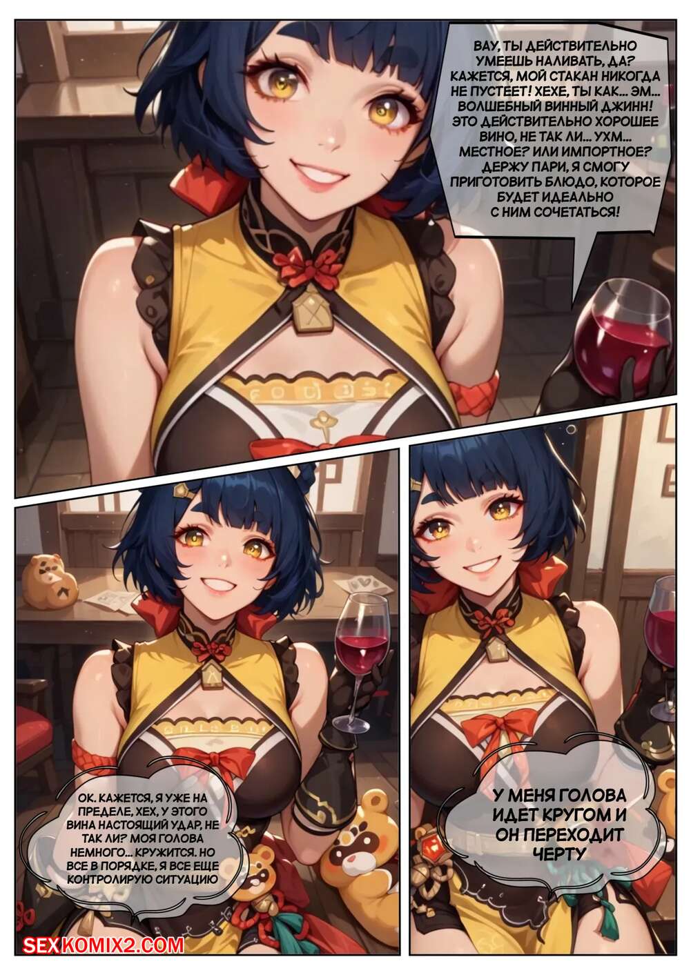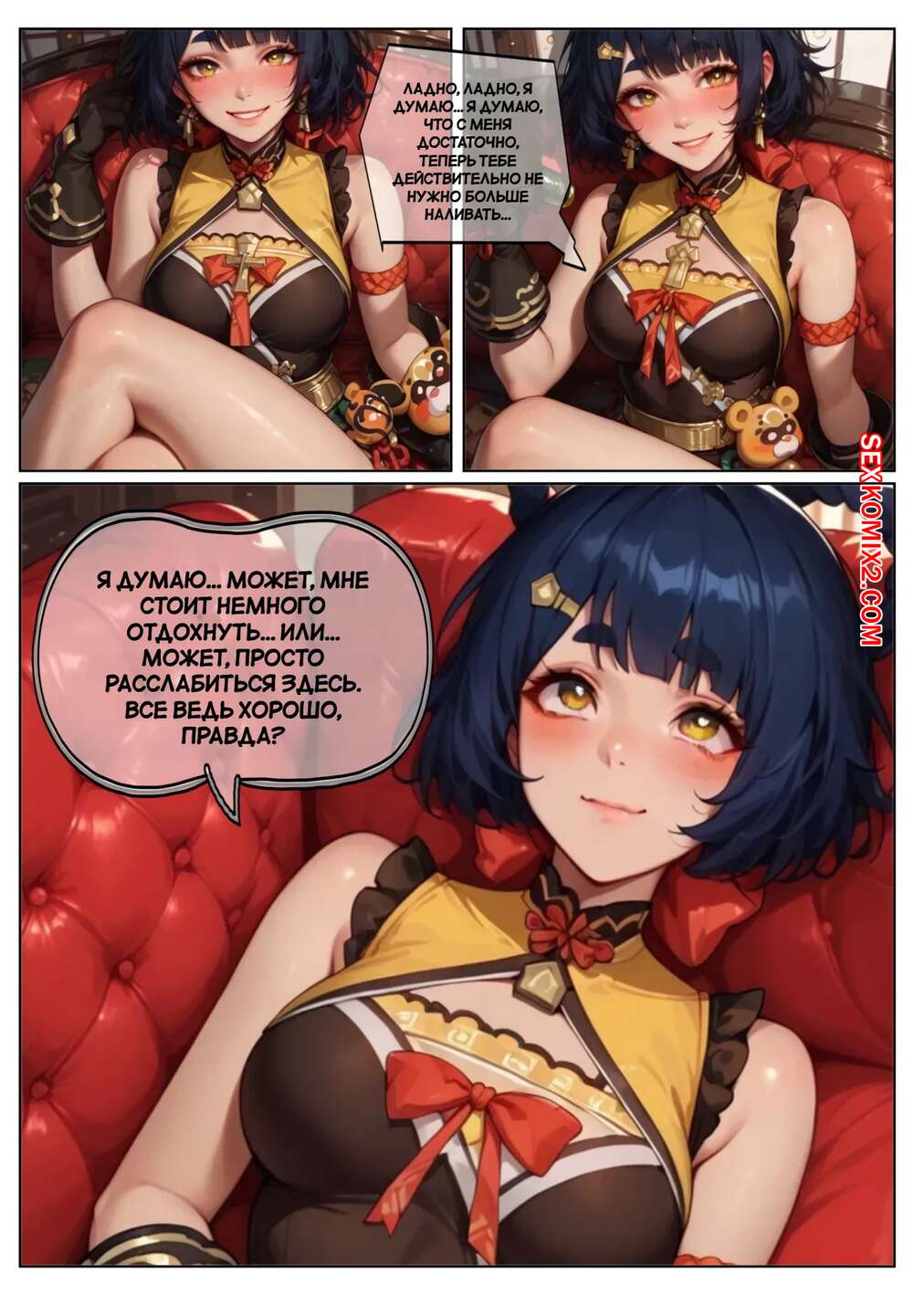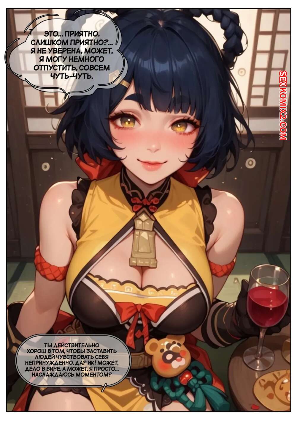 Порно комикс Genshin Impact. Пепел удовольствия. Pyroslut. The Ash of Pleasure Горячая брюнетка была очень возбуждена и решила повеселиться со своим дружком. Красотка разделась и отсосала большой хуй парня, после чего дала ему себя выебать во все дырочки.