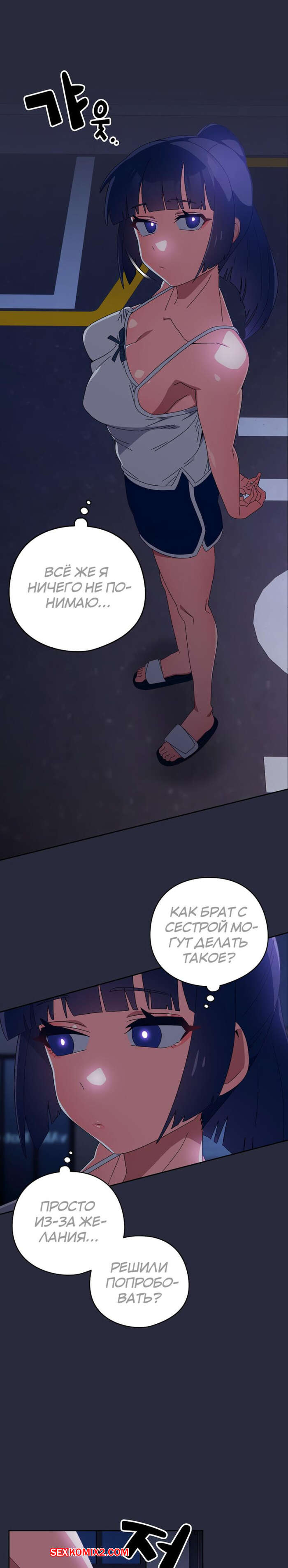 Порно комикс Отношения с сестрой пошли не по плану. Часть 22 и 23. yeodongsaeng i choegoya Горячая блондинка была очень возбуждена и хотела трахаться. Она разделась и отправилась в душ к своему братику, желая его соблазнить и заняться сексом.