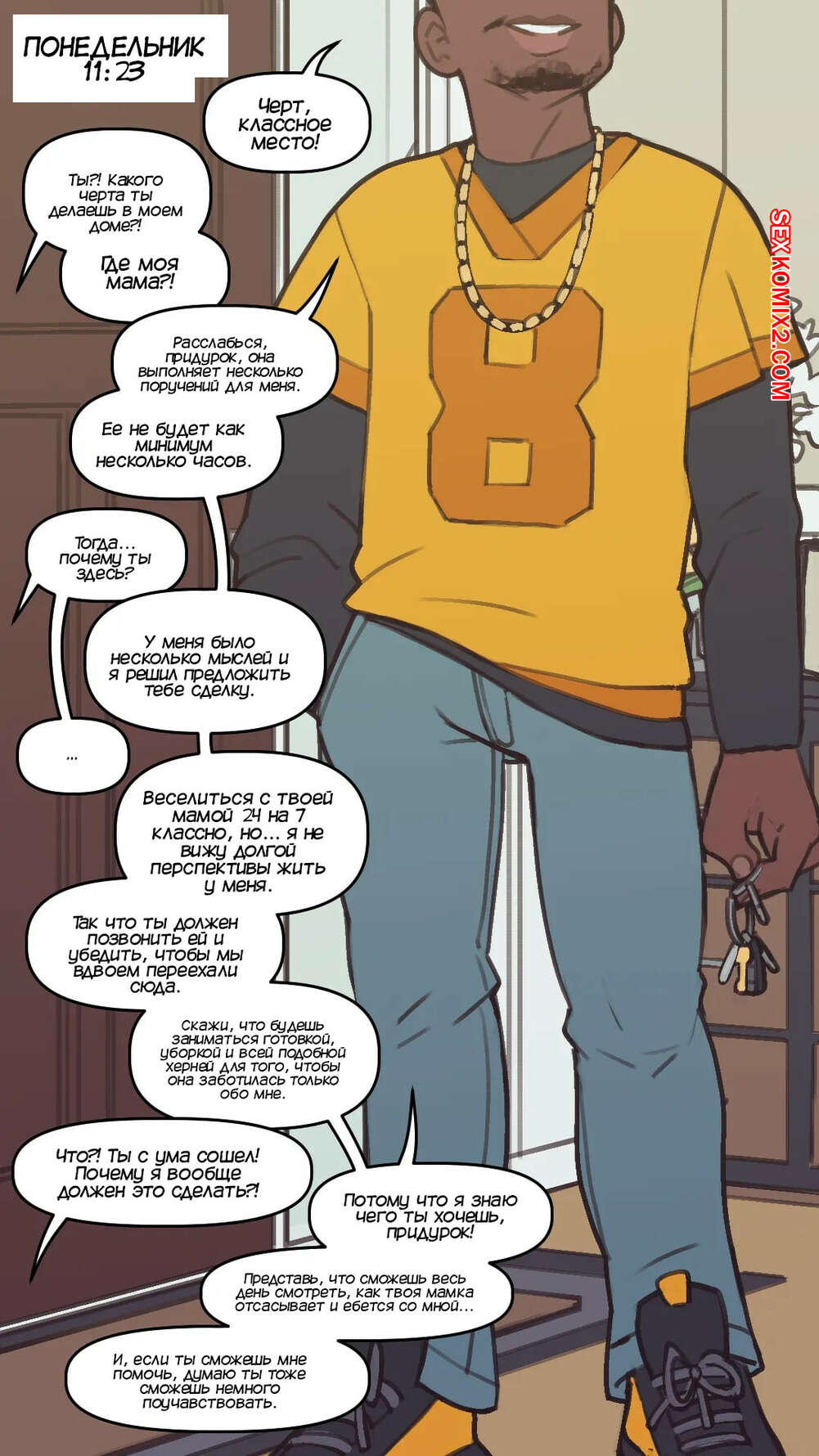 Порно комикс Мама имеет дело с моим задирой. Часть 2. Mom Deals With My Bully. NotEnoughMilk Темнокожий хулиган переехал жить к горячей милфе, чтобы трахать ее еще чаще. Красотка делает что угодно для своего любовника лишь для того, чтобы наслаждаться его членом, а ее сынок наблюдает за всем.