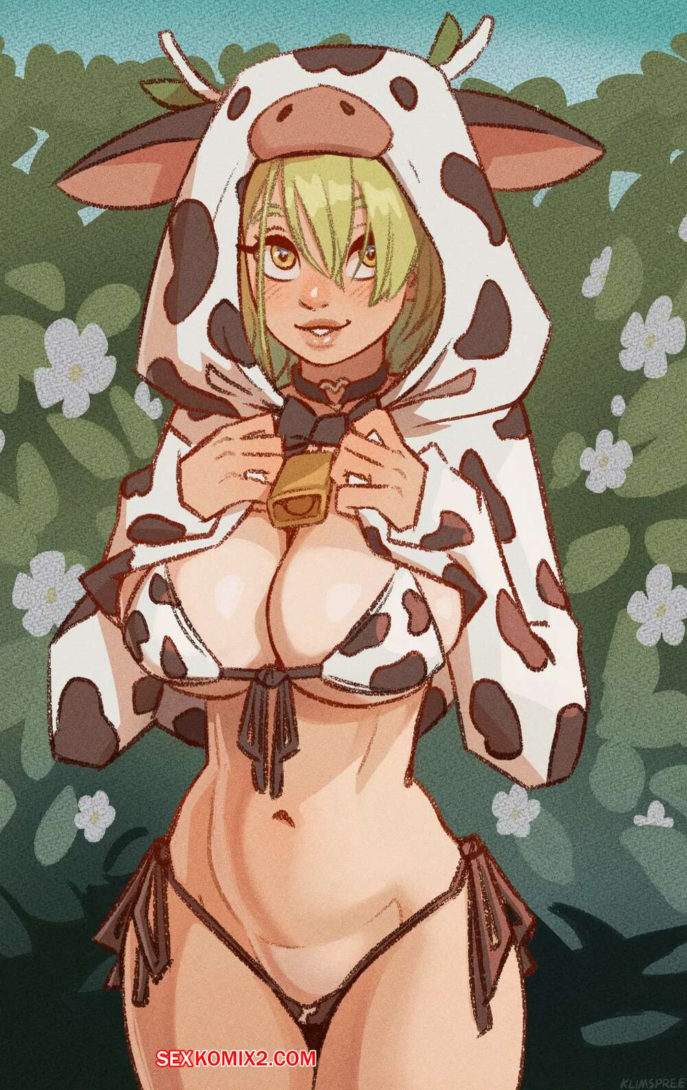 Порно комикс Фауна. Fauna. KlimSpree. Горячая красотка нашла в лесу парня и соблазнила его шикарным телом, желая повеселиться. Красотка завязала парню глаза, после чего стала дрочить его член руками и ножками, помогая ему кончить.