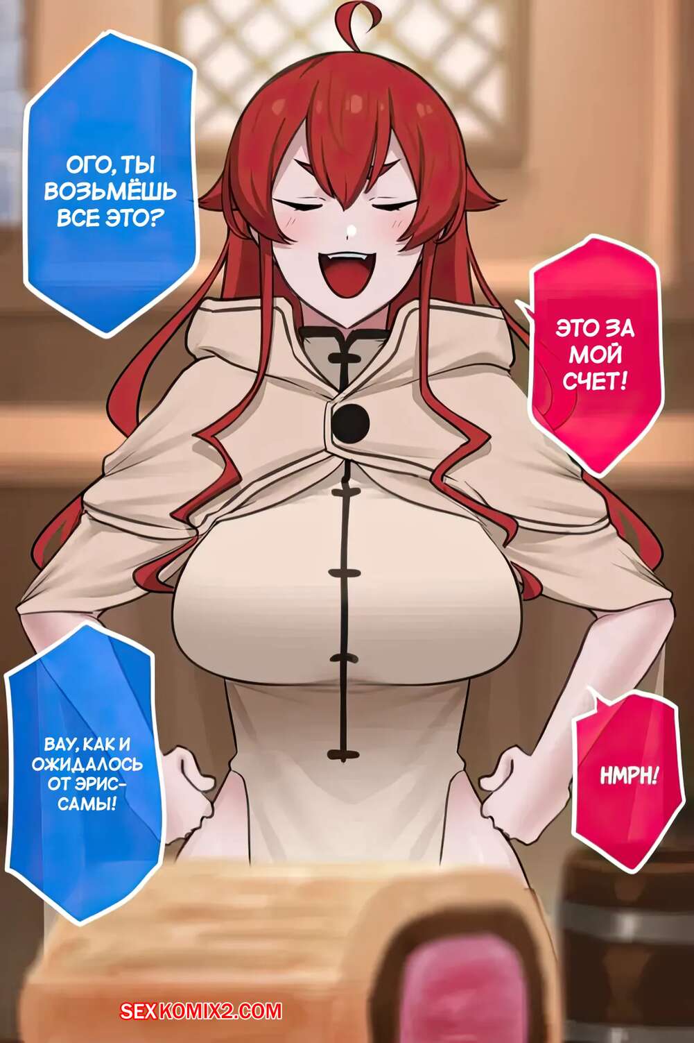 Порно комикс Mushoku Tensei Isekai Ittara Honki Dasu. Эрис Нетотарэ. Eris NTR. Punpunn Рыжая красотка без ума от большого черного члена своего дружка. Красотка разделась и отсосала большой хуй парня, после чего дала ему выебать свою пизденку и кончить в нее.