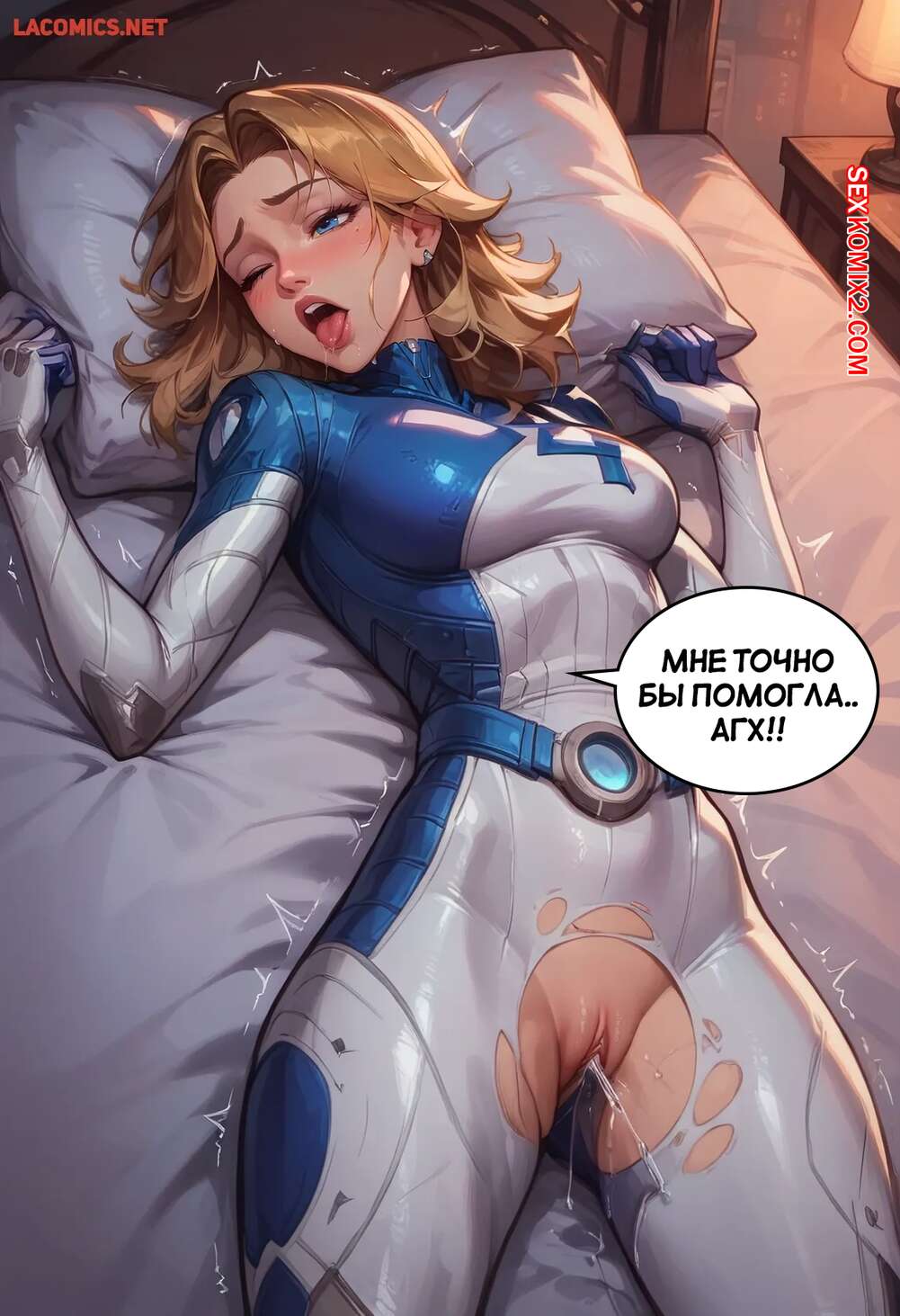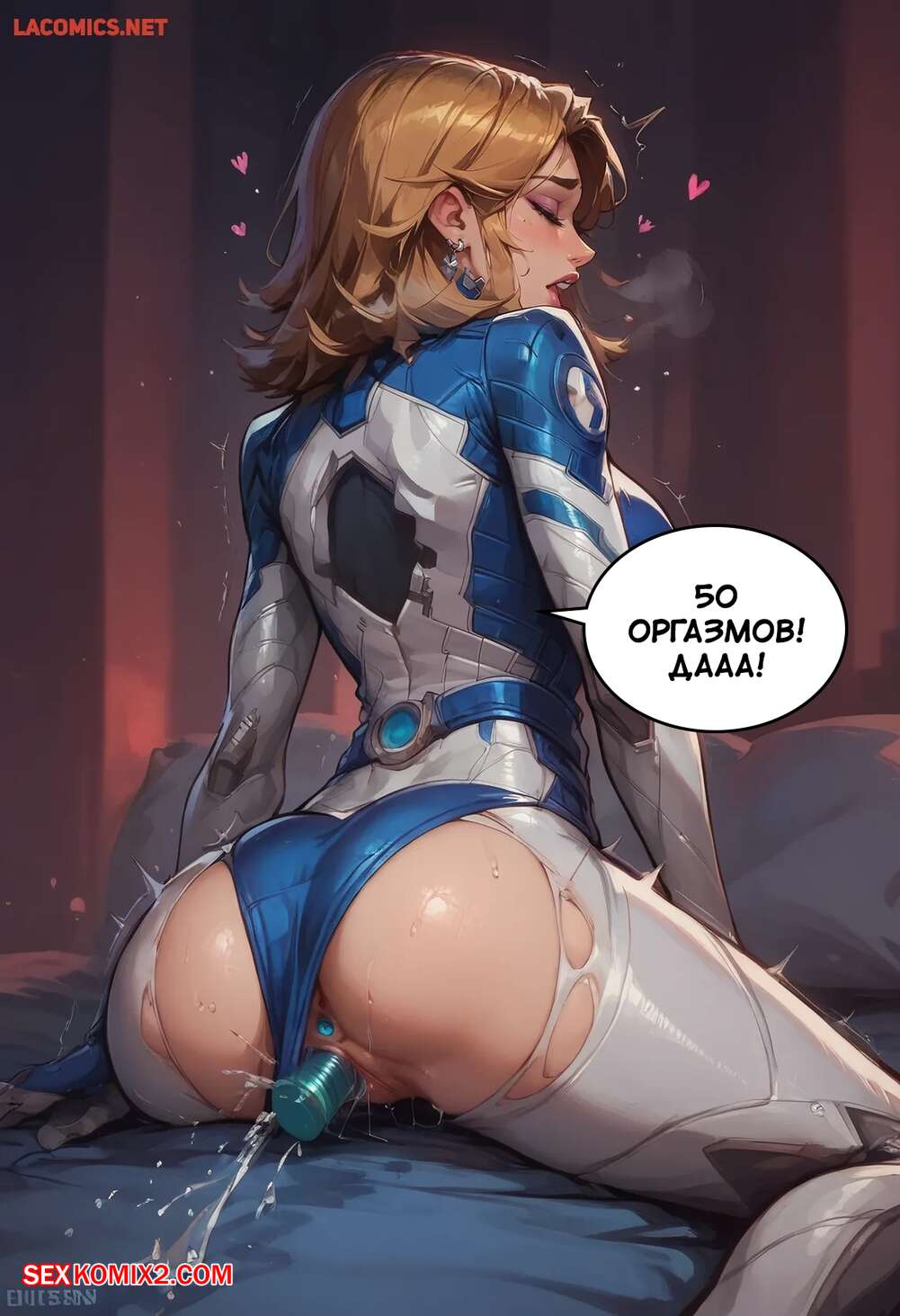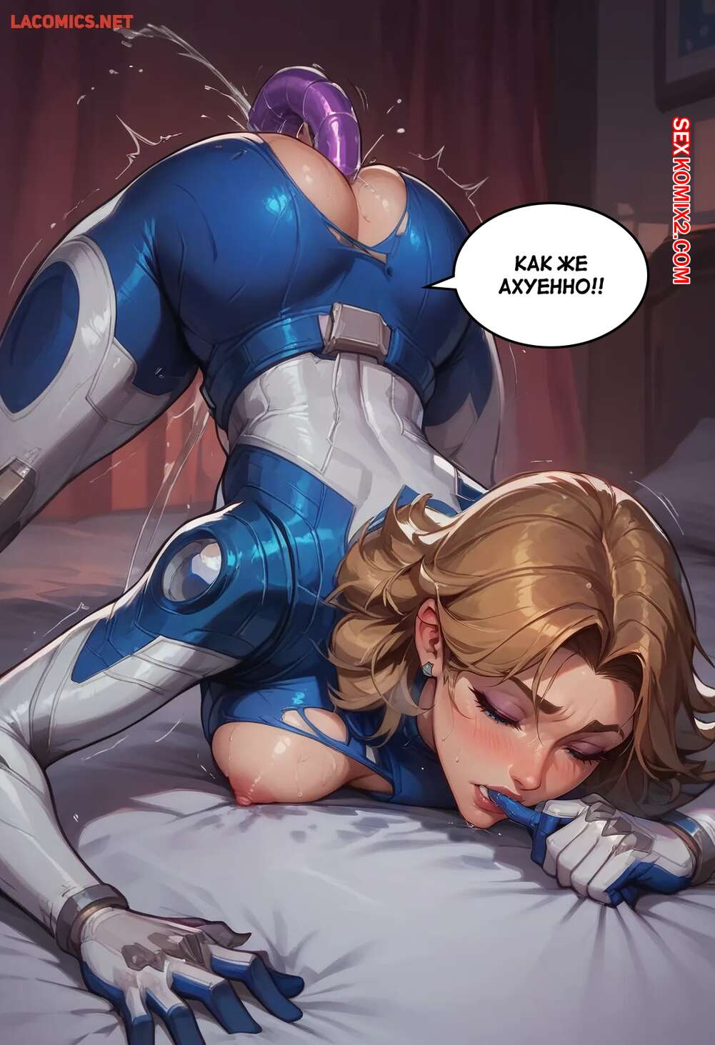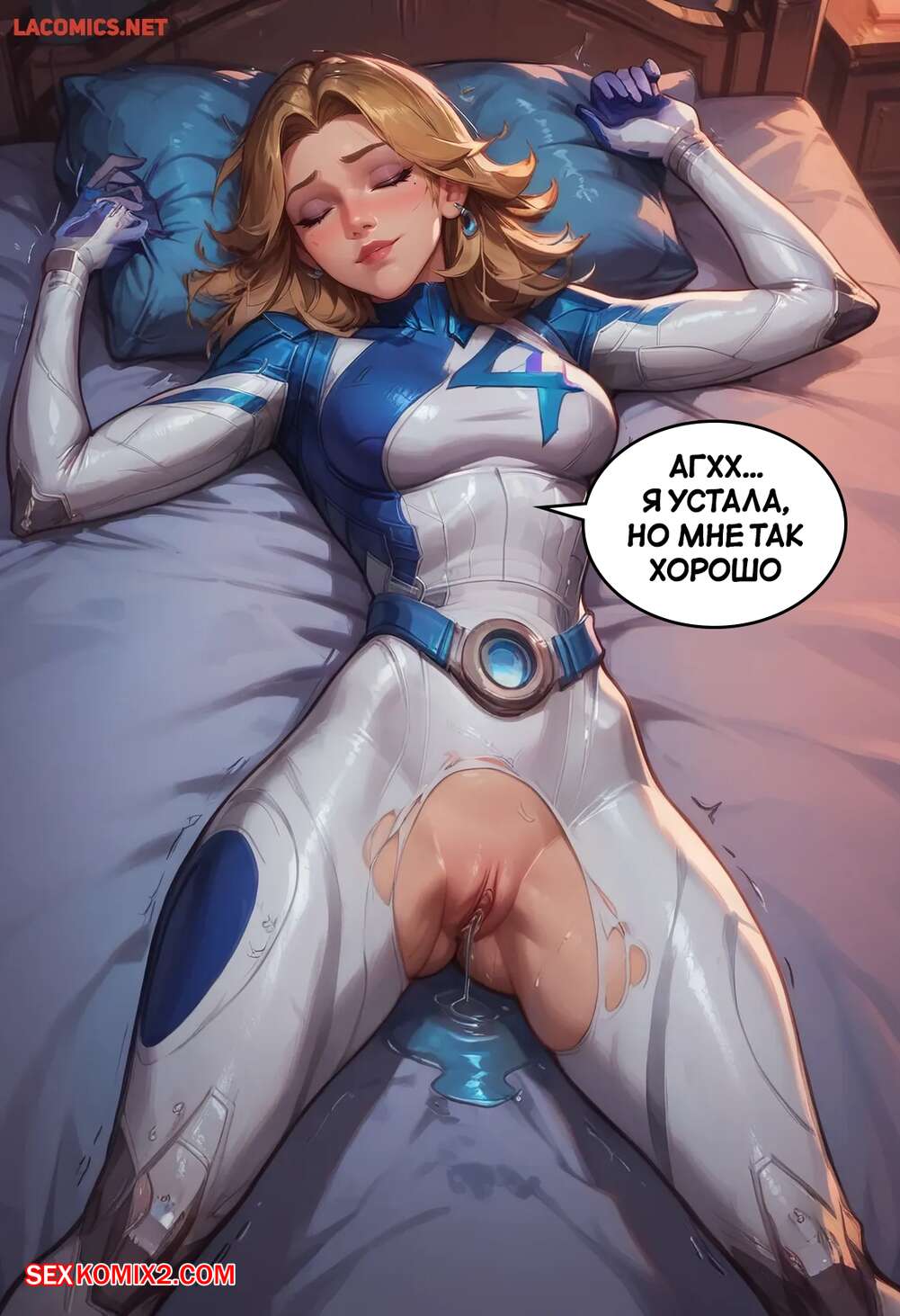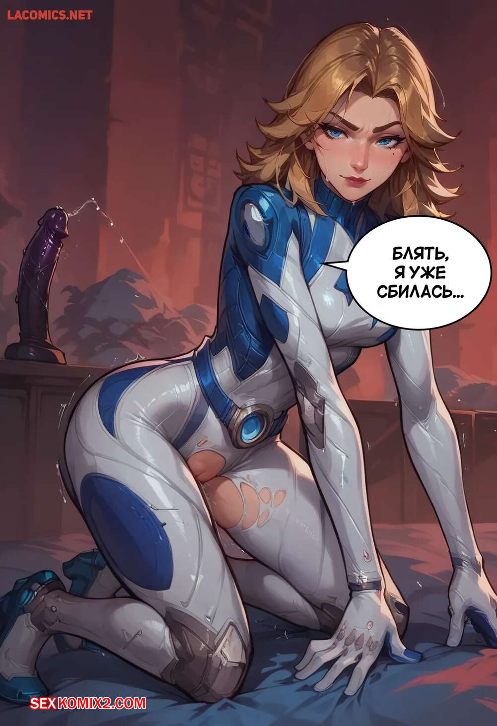 Порно комикс Marvel Rivals. Сью Шторм. Sue Storm. Scarlet Meow Горячая блондинка Сью Шторм очень возбуждена и хочет трахаться, но ее мужа нет рядом. Красотка раздвигает ножки и трахает себя с помощью секс игрушек, получая невероятное удовольствие.