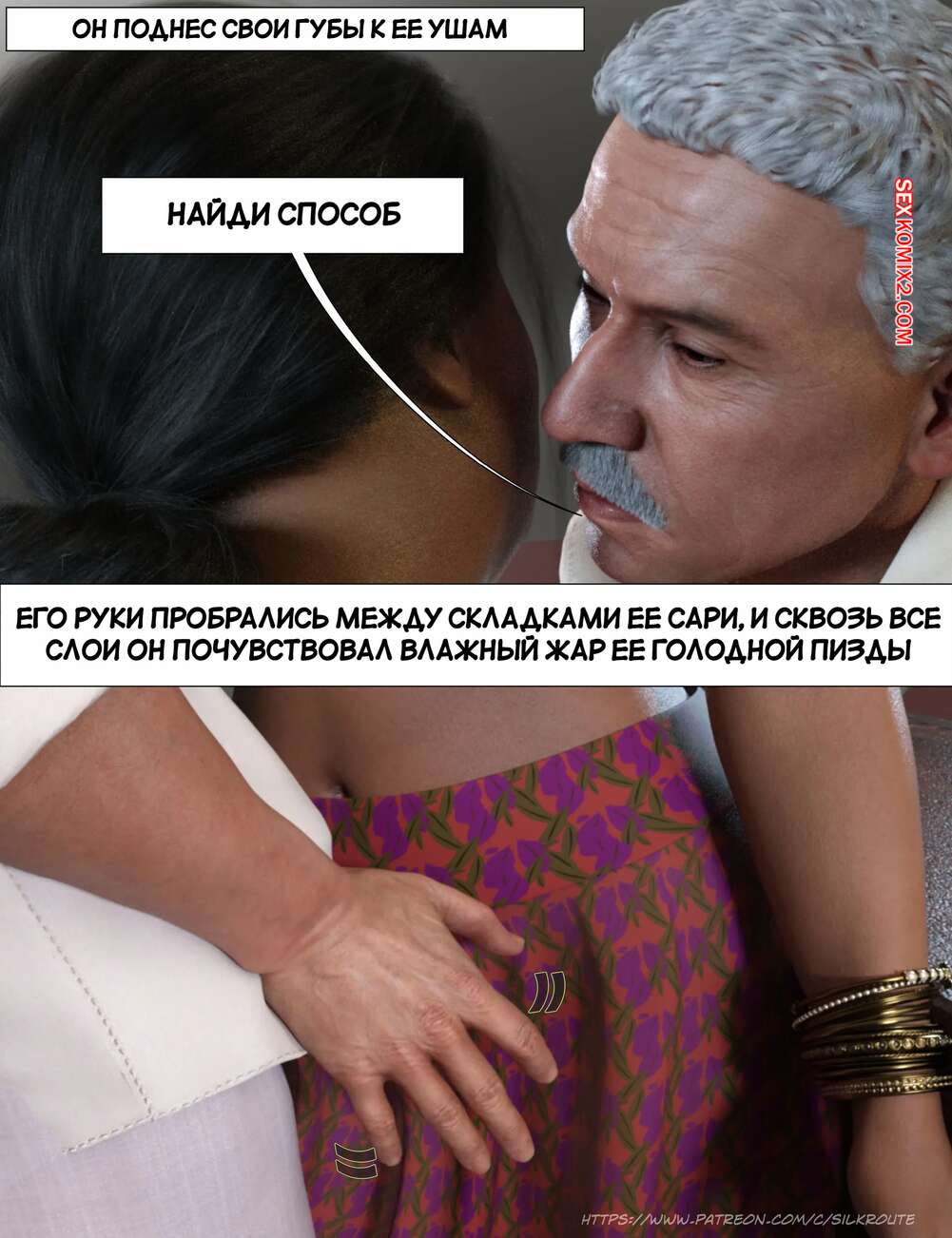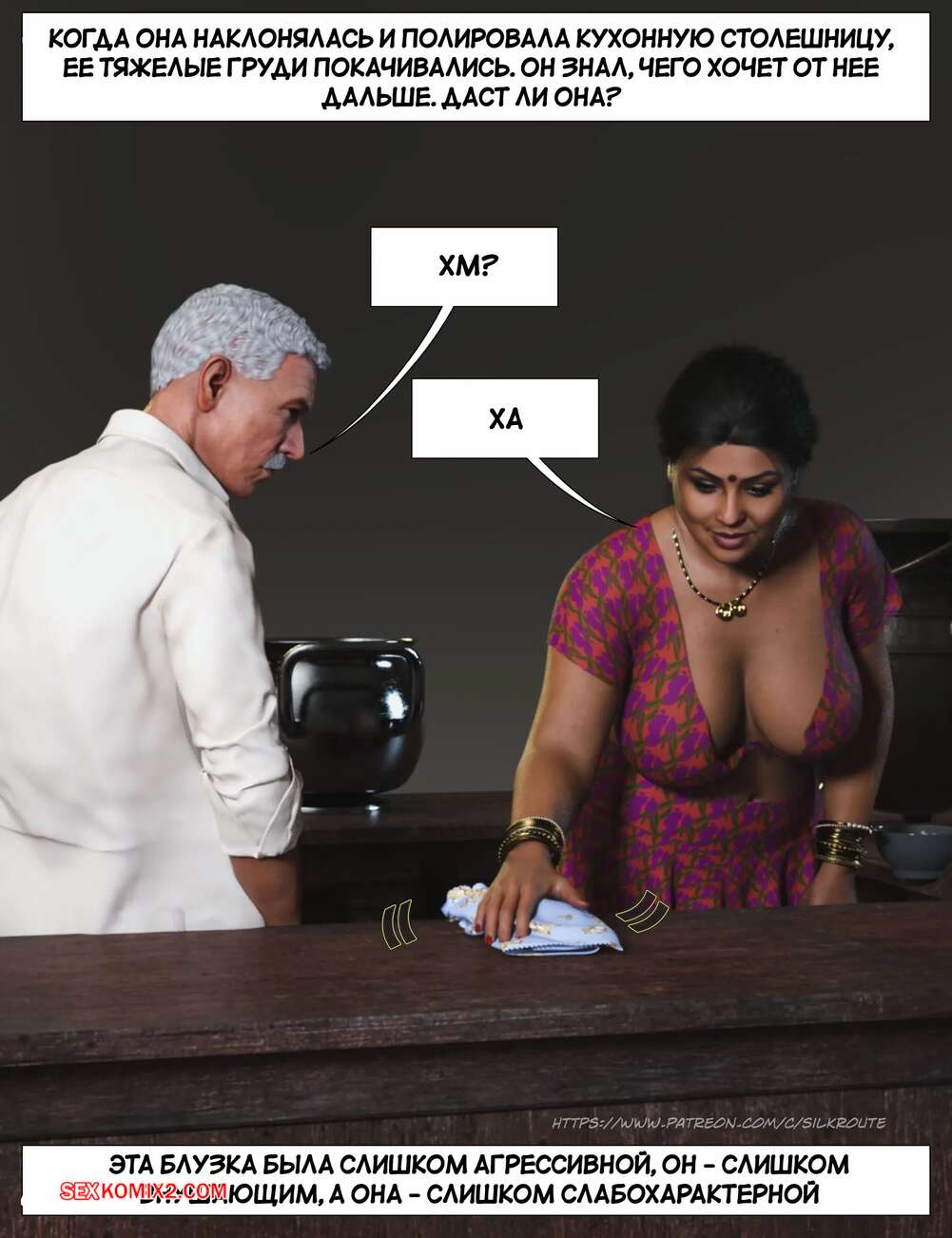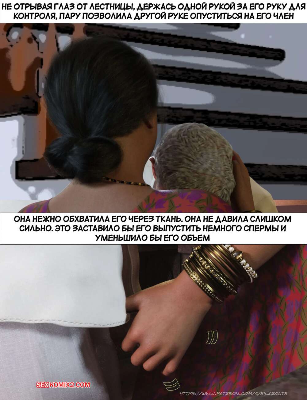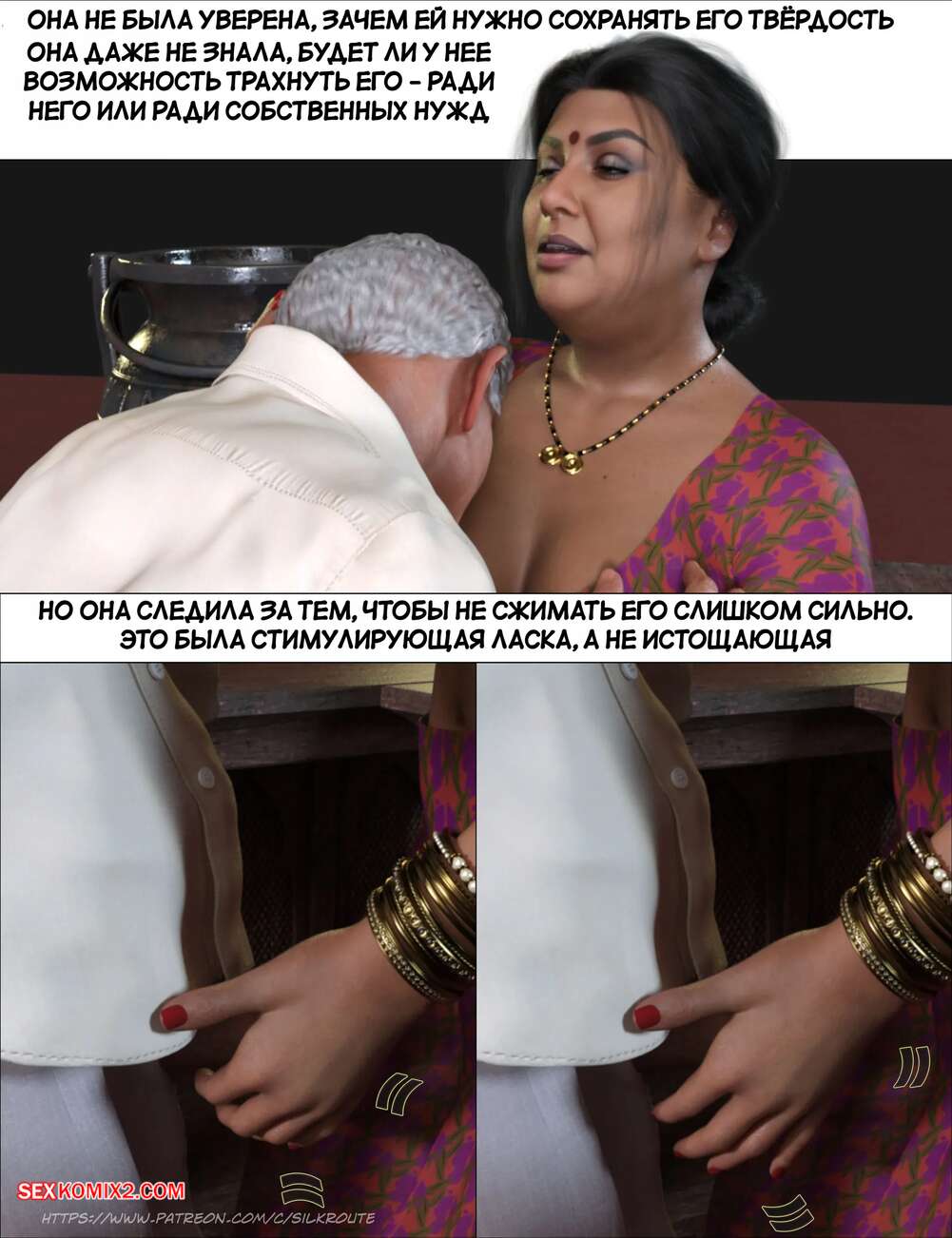Порно комикс Моменты Масала. Часть 4. Masala Moments Старик остался наедине с горячей милфой, желая повеселиться. Он оголил большие сиськи красотки и стал их ласкать, после чего милфа взяла в руки хуй старика и стала ему дрочить.