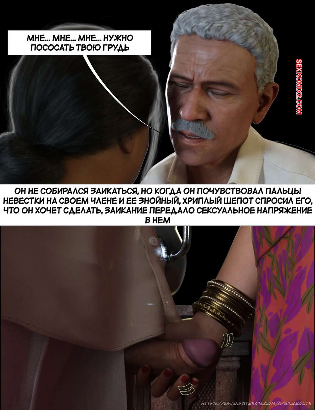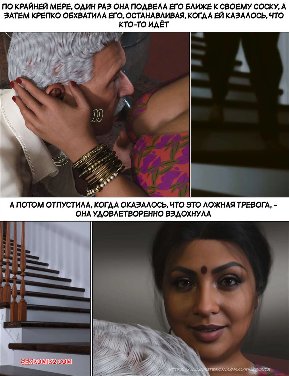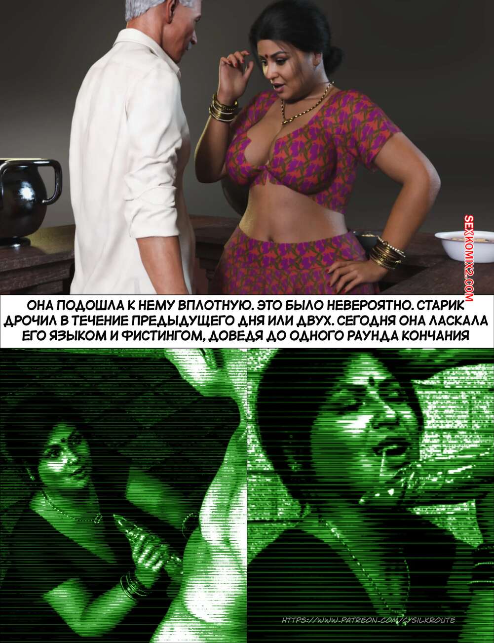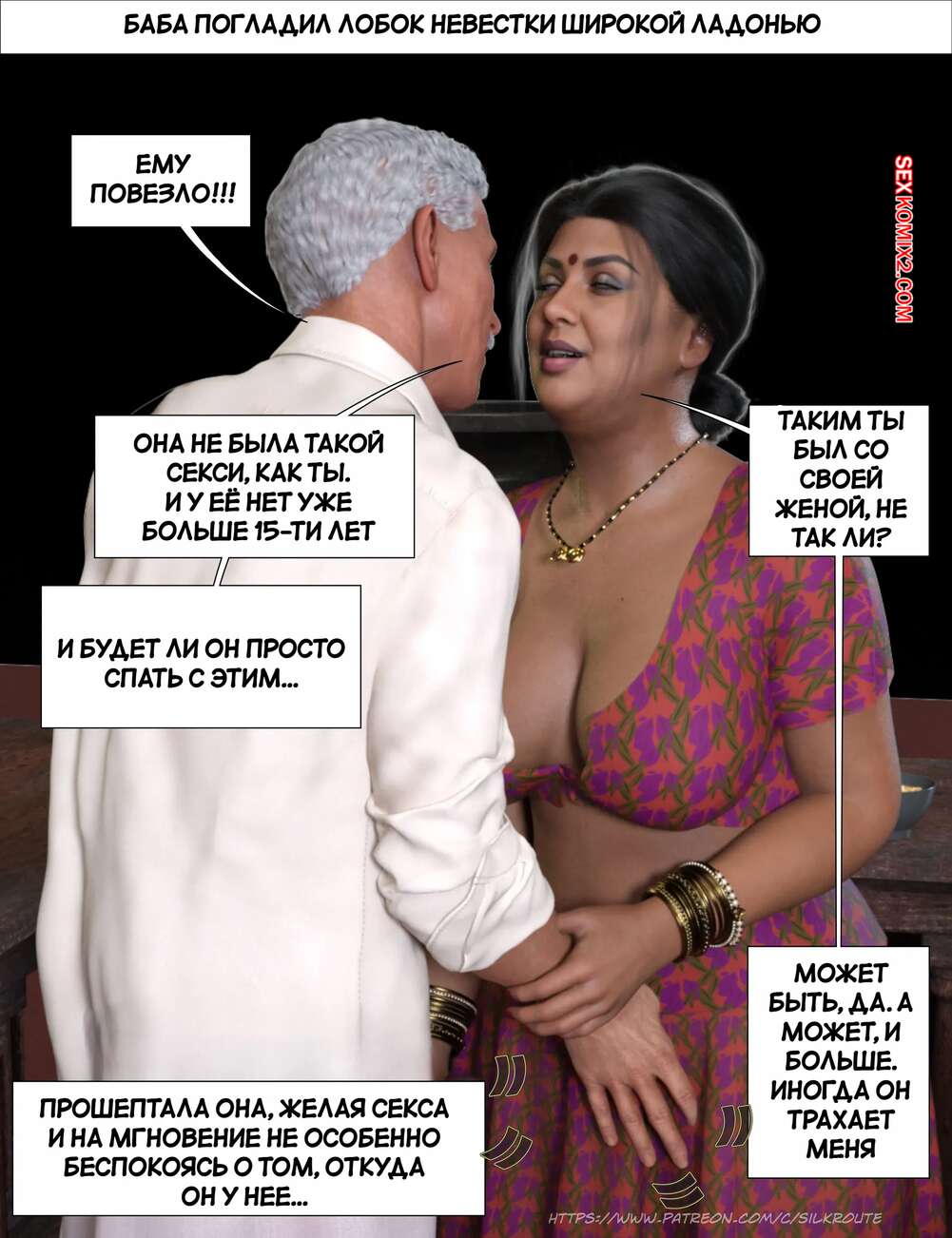 Порно комикс Моменты Масала. Часть 4. Masala Moments Старик остался наедине с горячей милфой, желая повеселиться. Он оголил большие сиськи красотки и стал их ласкать, после чего милфа взяла в руки хуй старика и стала ему дрочить.