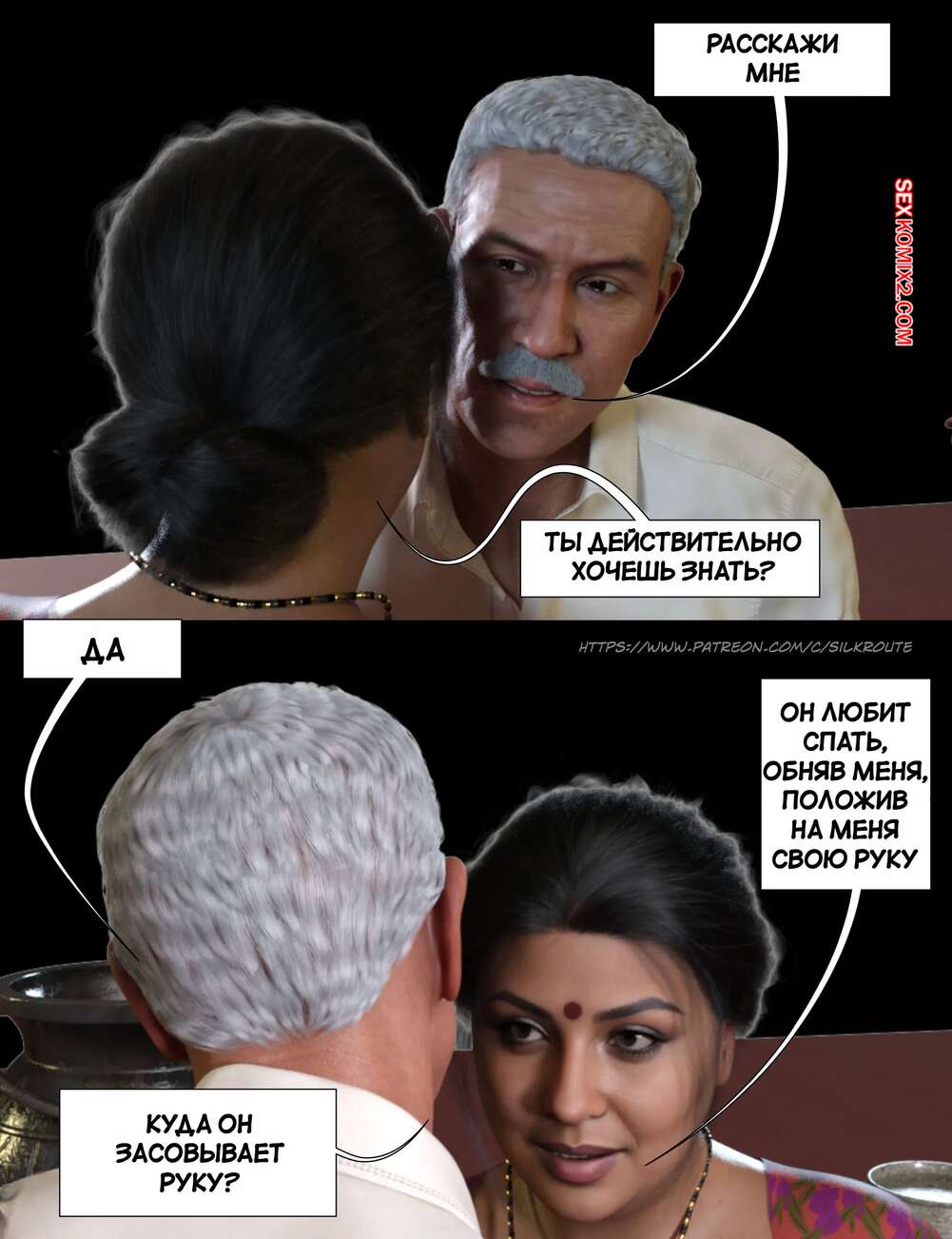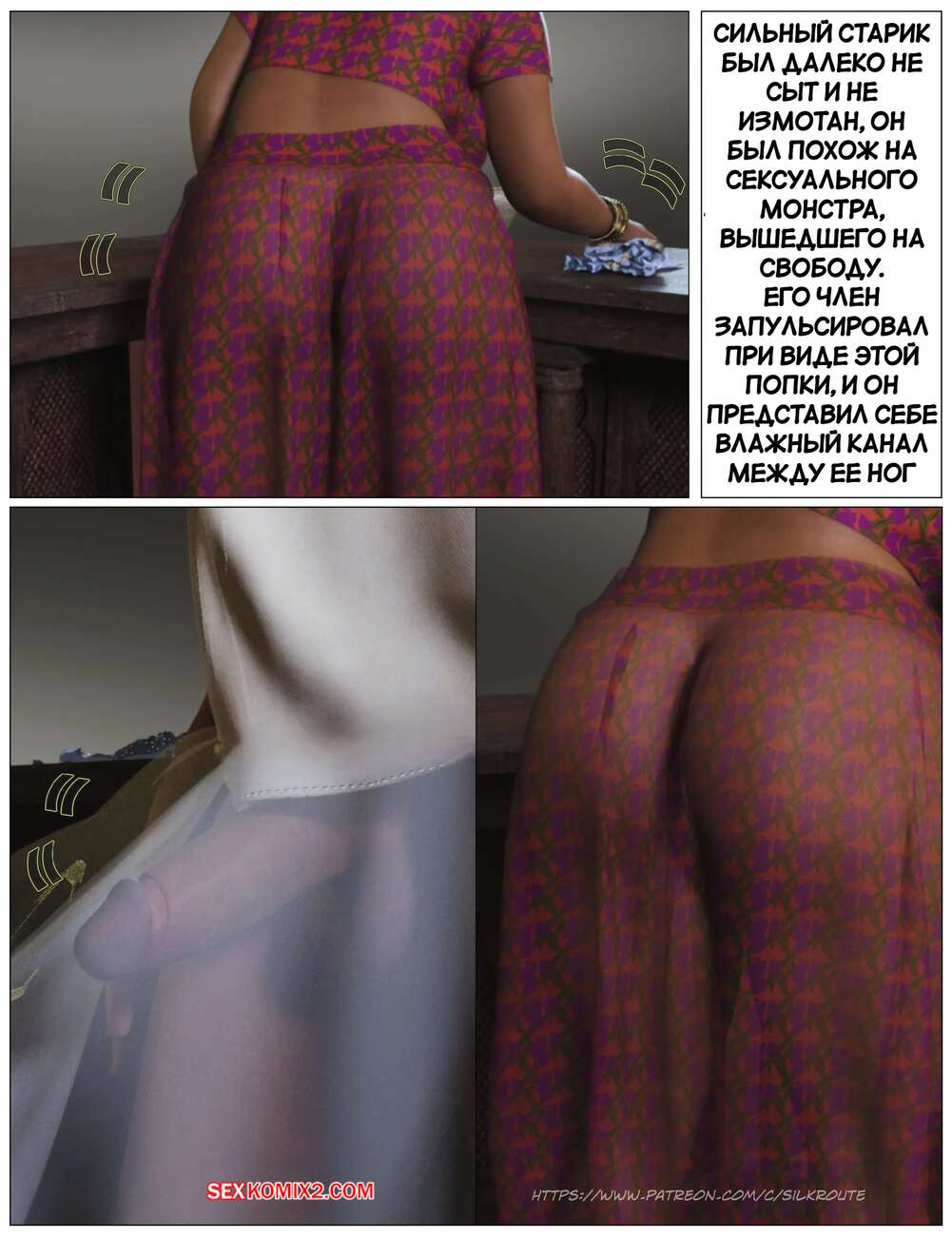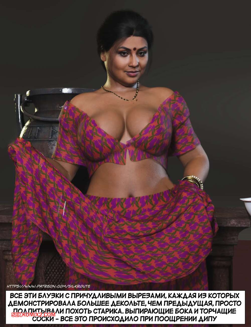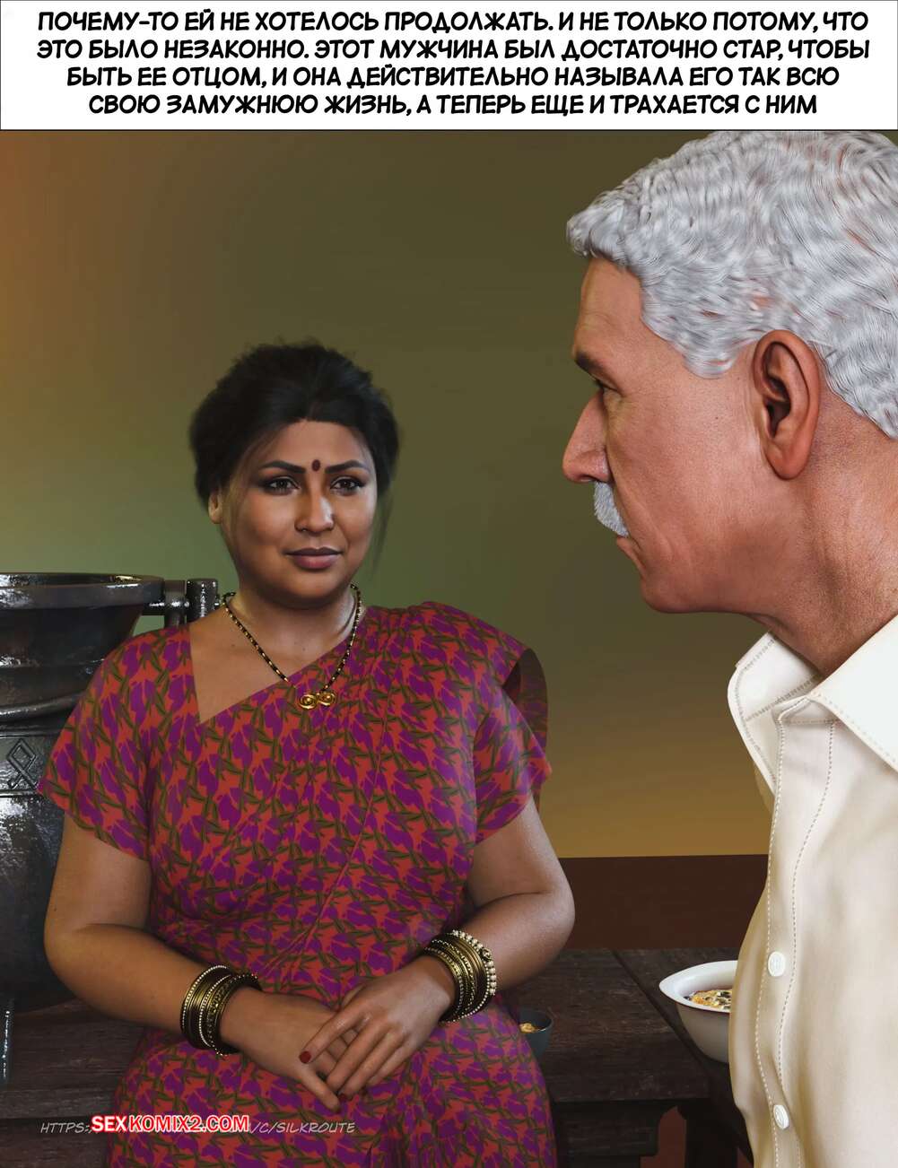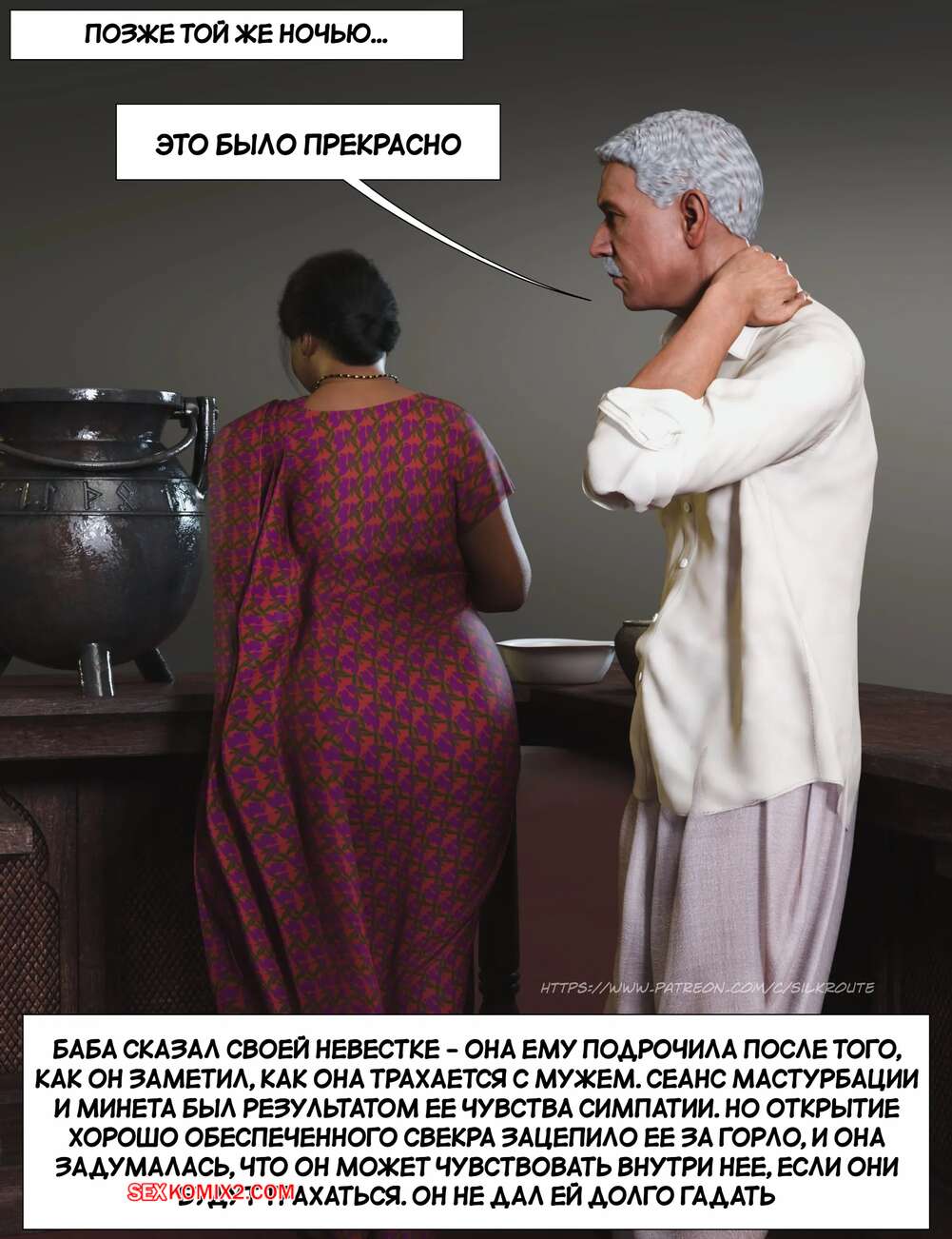 Порно комикс Моменты Масала. Часть 4. Masala Moments Старик остался наедине с горячей милфой, желая повеселиться. Он оголил большие сиськи красотки и стал их ласкать, после чего милфа взяла в руки хуй старика и стала ему дрочить.