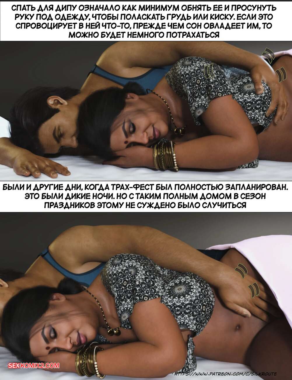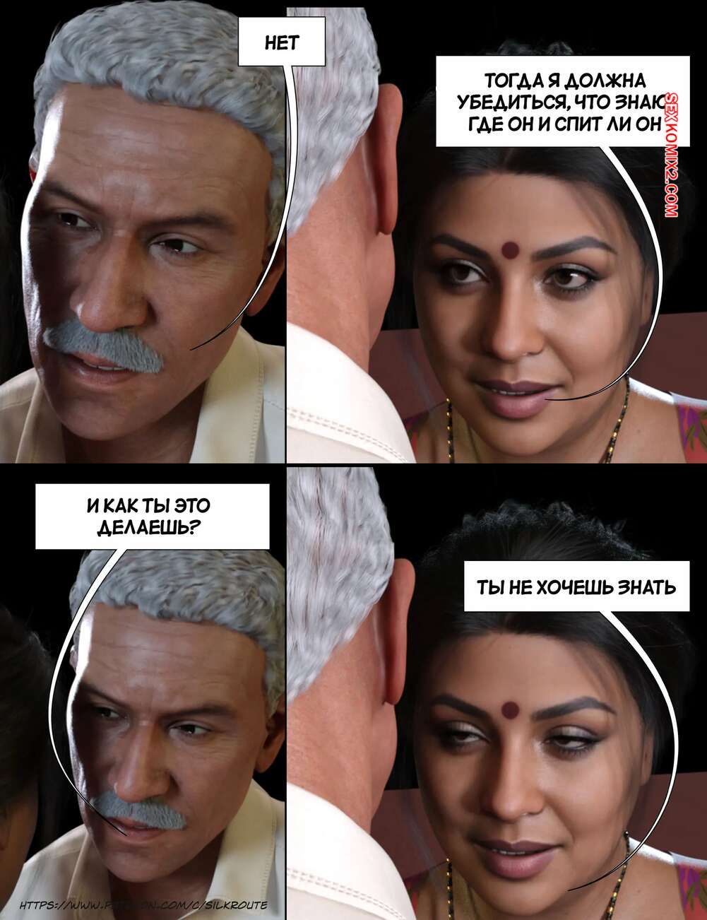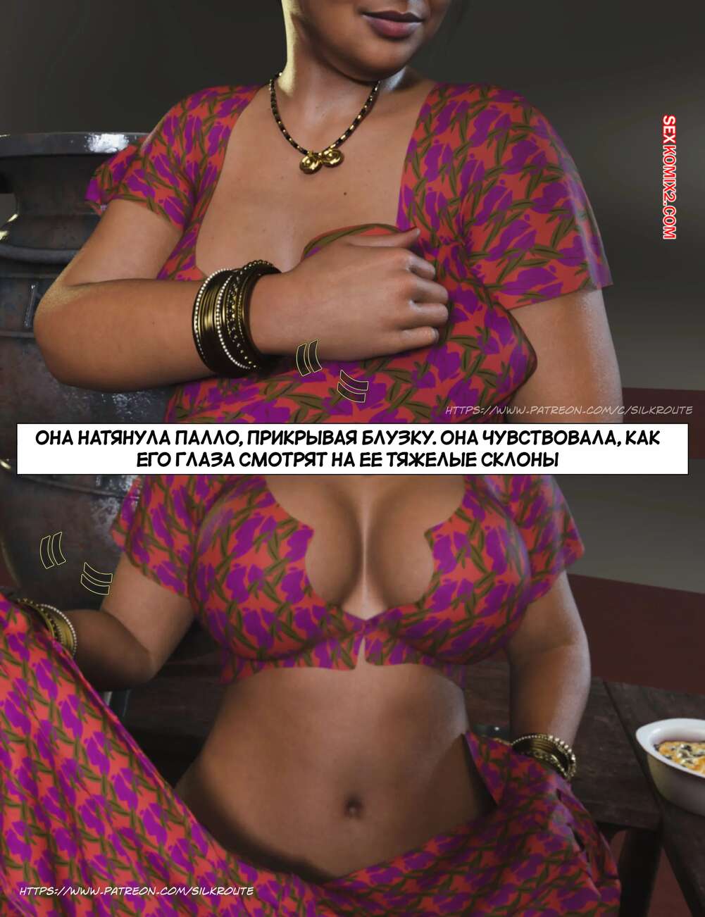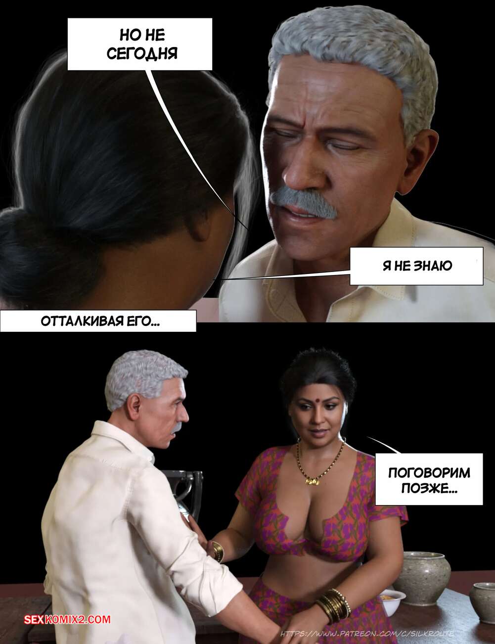 Порно комикс Моменты Масала. Часть 4. Masala Moments Старик остался наедине с горячей милфой, желая повеселиться. Он оголил большие сиськи красотки и стал их ласкать, после чего милфа взяла в руки хуй старика и стала ему дрочить.