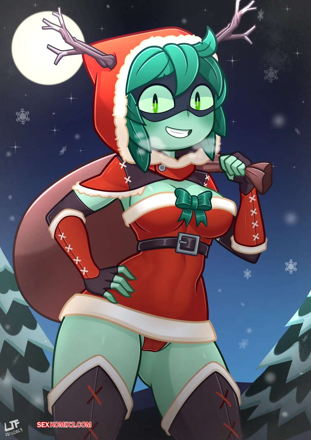 Порно комикс Adventure Time. Huntress Wizard christmas present. Lezaki. Горячая красотка была очень возбуждена и решила повеселиться со своим дружком. Она разделась и соблазнила парня шикарным телом, после чего дала ему себя выебать и кончить в нее.