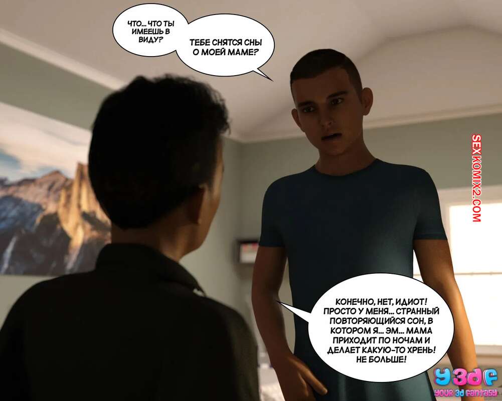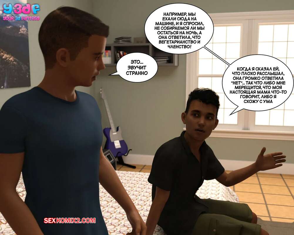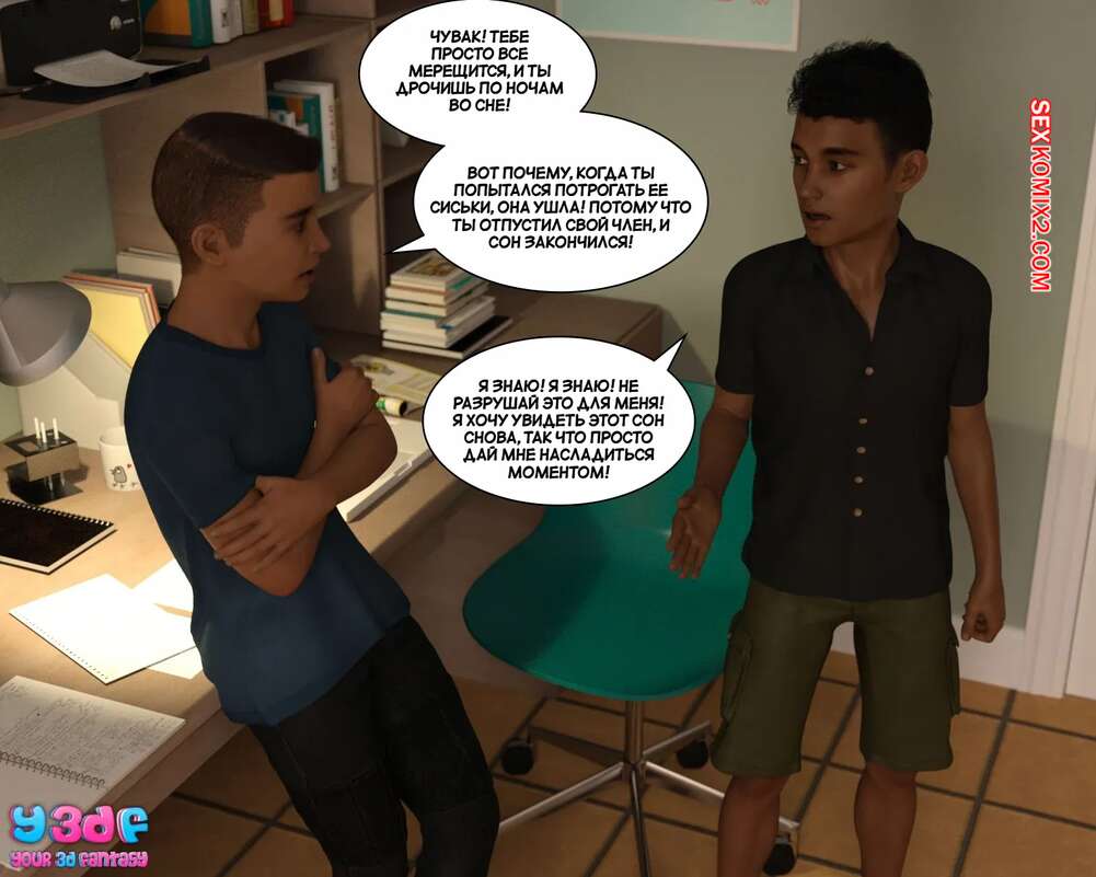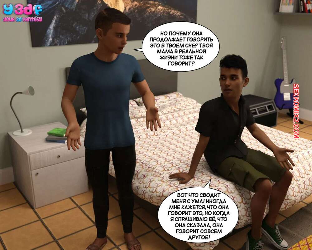 Порно комикс Загар. Часть 4. The Tan. Y3DF Парнишка пришел в комнату к своему другу, чтобы рассказать ему о снах с его сексуальной мамкой. Красотка надевает сексуальный костюмчик и сосет хуй сына, после чего дает ему себя выебать.