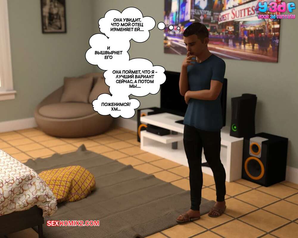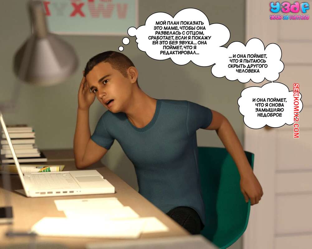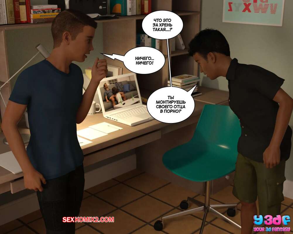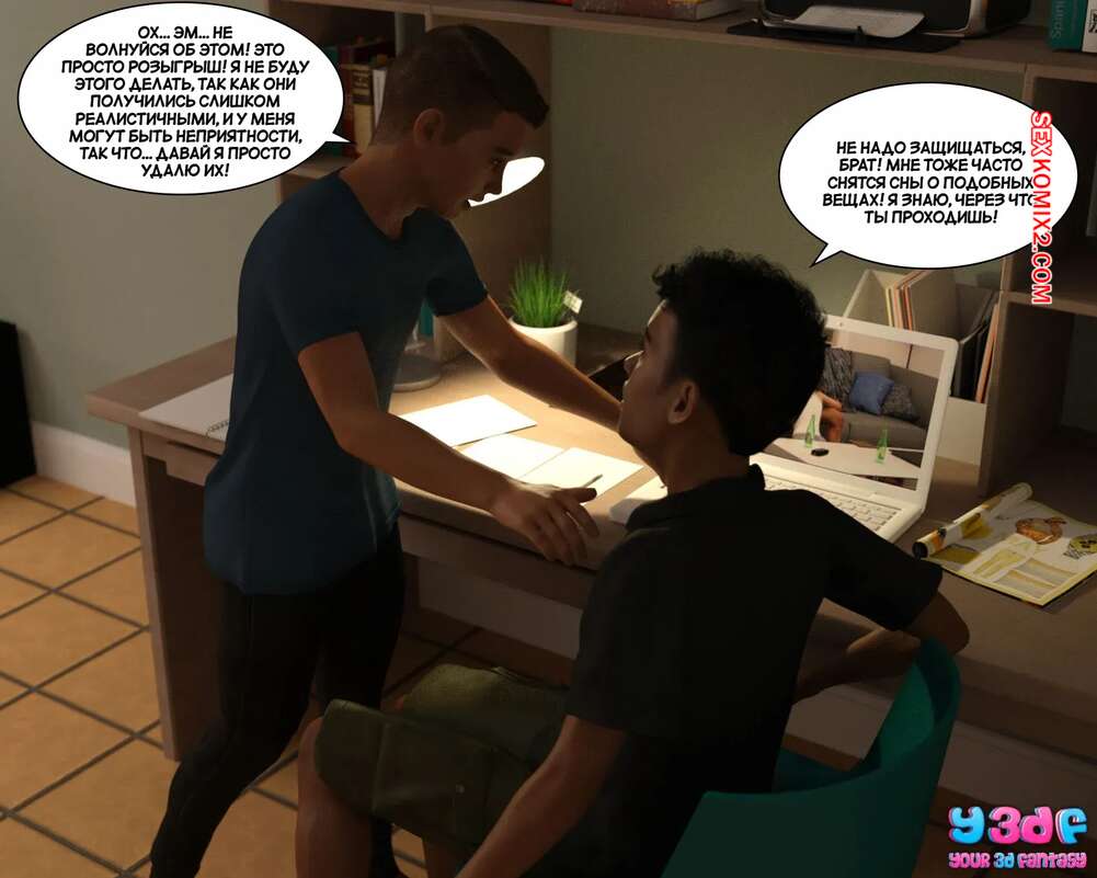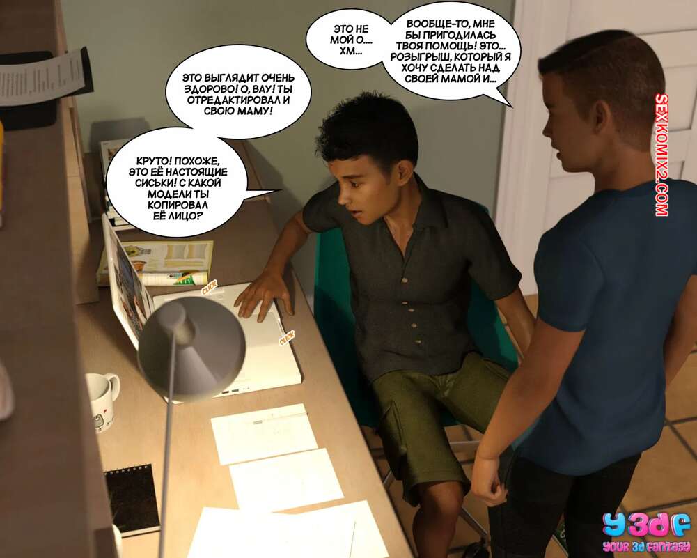 Порно комикс Загар. Часть 4. The Tan. Y3DF Парнишка пришел в комнату к своему другу, чтобы рассказать ему о снах с его сексуальной мамкой. Красотка надевает сексуальный костюмчик и сосет хуй сына, после чего дает ему себя выебать.