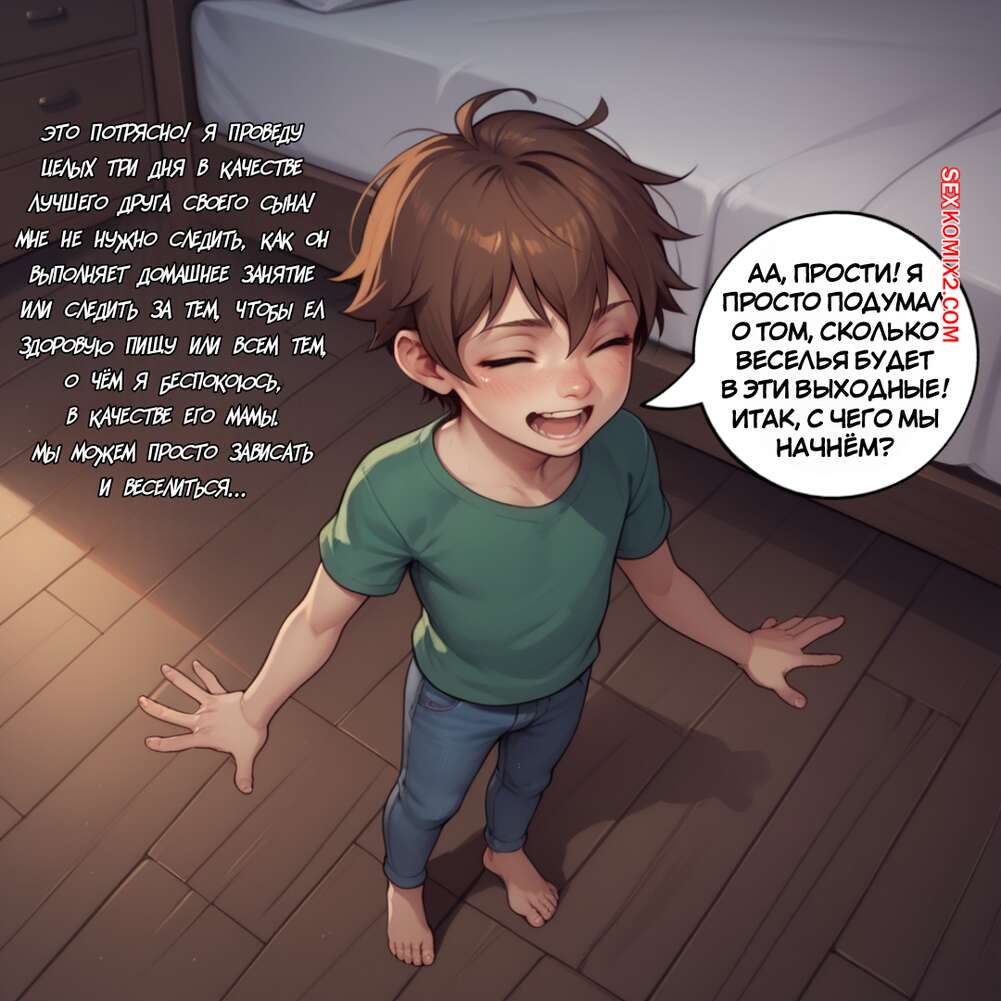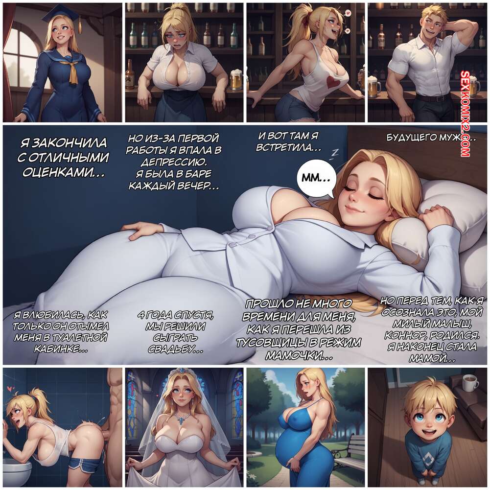 Порно комикс Долгие выходные. The Long Weekend Горячая милфа воспользовалась книгой заклинаний и поменялась телами со своим сыном. Теперь парнишка в теле матери привлекает внимание симпатичного парня. Он соблазняет горячую милфу и хорошенько ее трахает, заполняя своей спермой.
