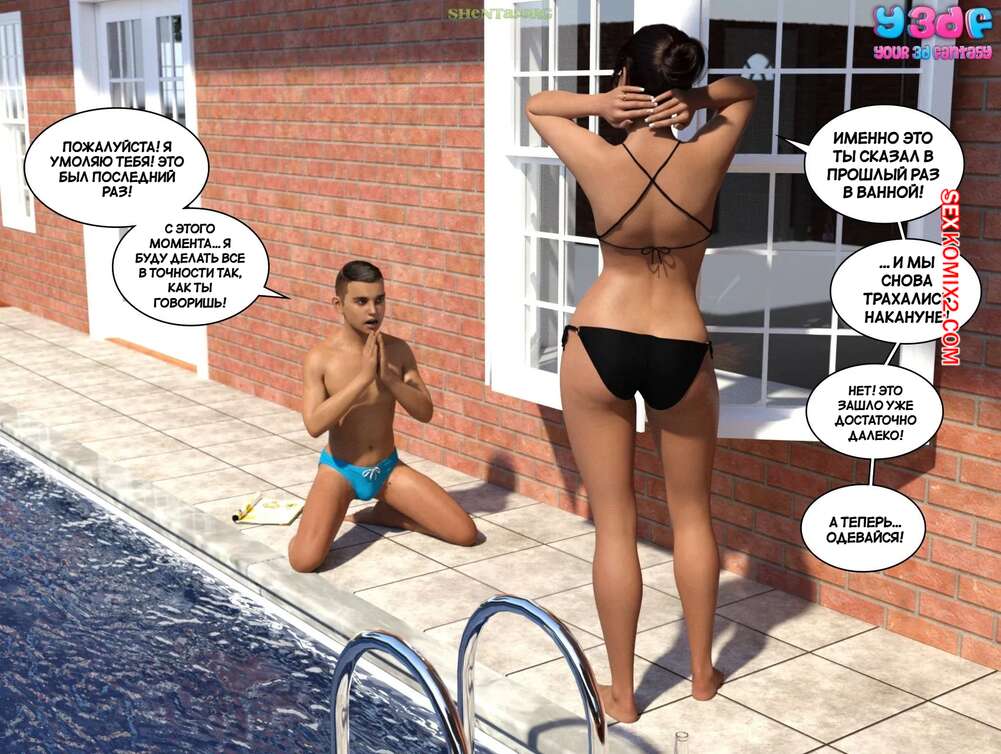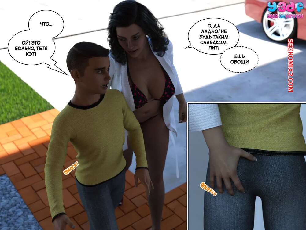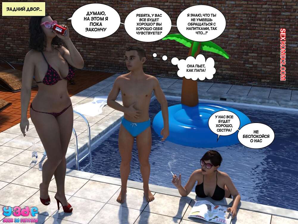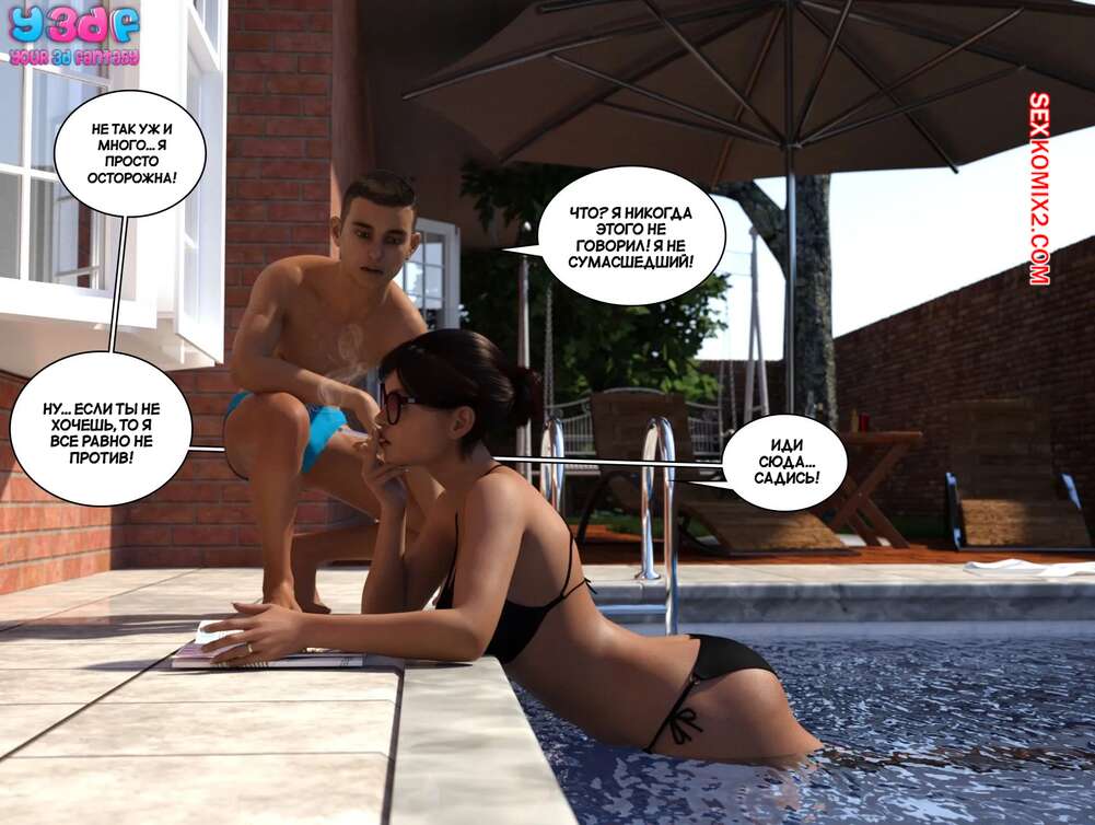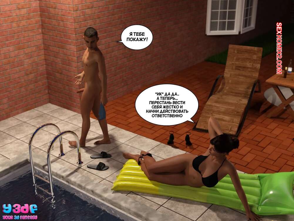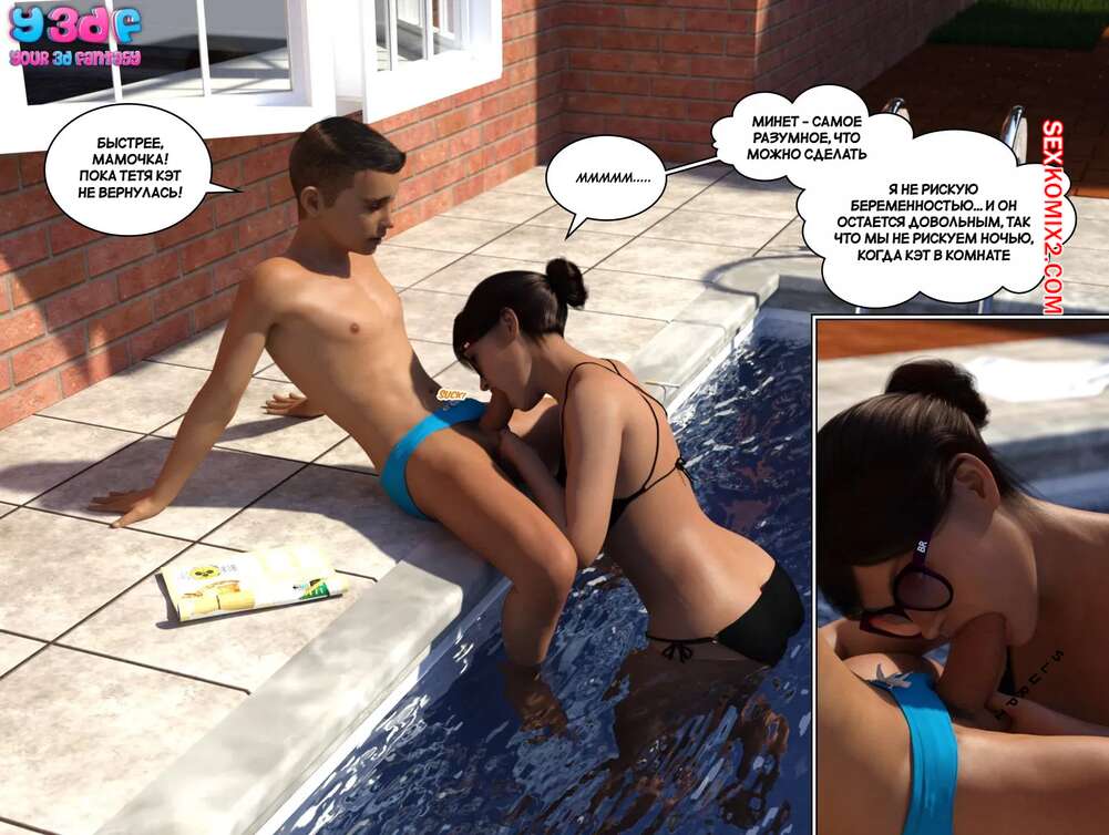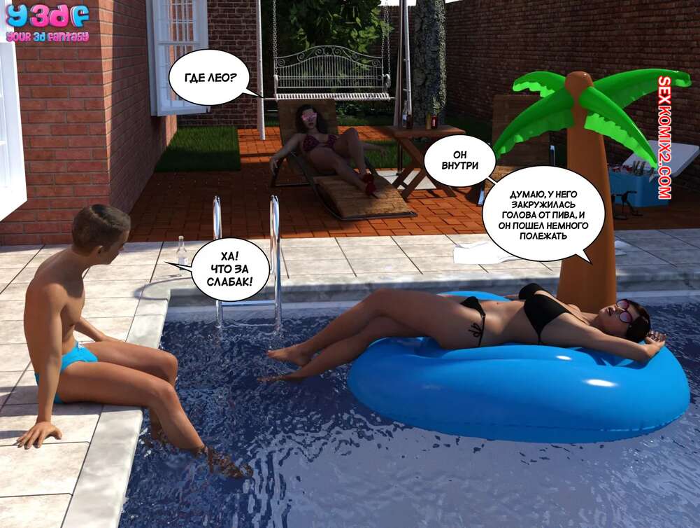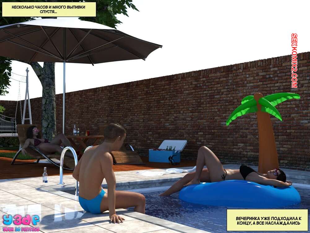 Порно комикс Порно комикс Загар. Часть 6. The Tan. Y3DF Горячие милфы отдыхали у бассейна и выпивали. Они сильно устали и решили лечь спать прямо на улице. Молодой парншика решил воспользоваться моментом и вставил свой член в пизденку тети, чтобы ее трахнуть.