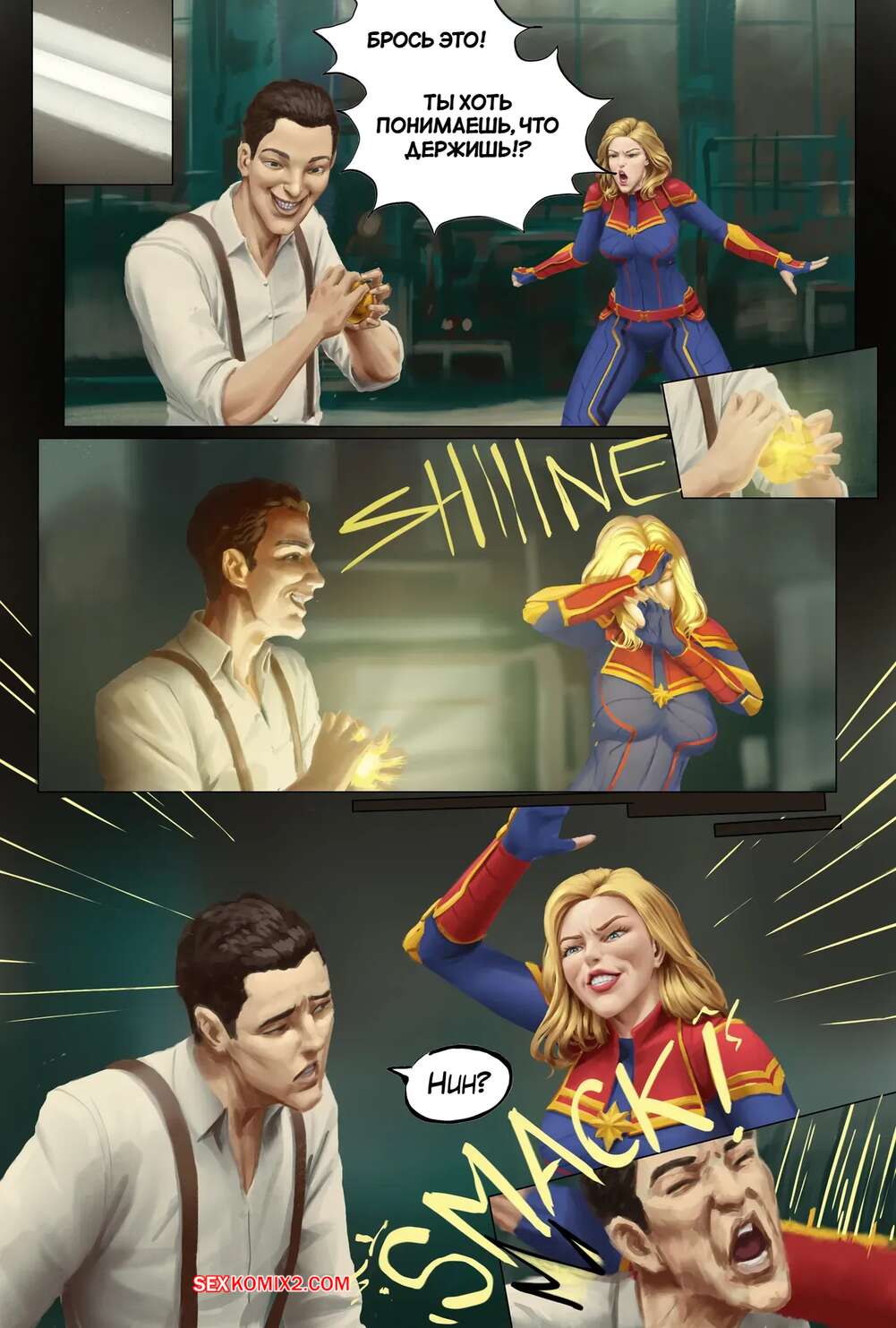 Порно комикс Marvel Comics. Великолепно. Marvelous. TSFSingularity. Парень поменялся местами с горячей красоткой Капитан Марвел. Красотка разделась и связалась паренька, после чего оседлала его большой хуй и дала себя хорошенько выебать.