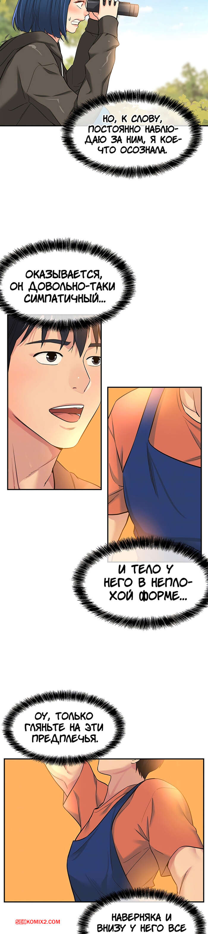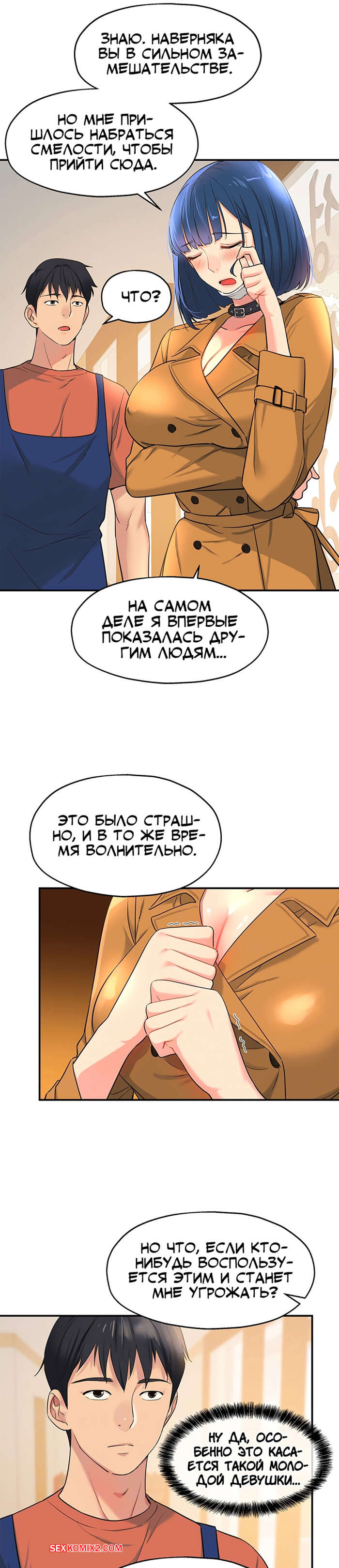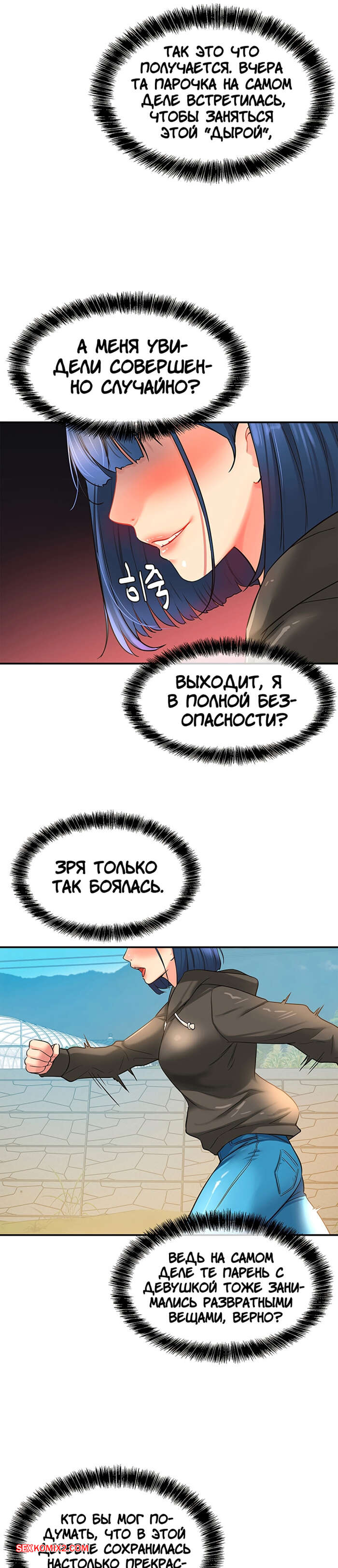 Порно комикс Маленький магазинчик. Дыра снова открыта. Часть 13 и 14 и 15 Горячая брюнетка отправилась в будку, желая повеселиться и снять напряжение. Она стала смотреть на член парня и ласкать свою пизденку, представляя как они трахаются без всяких препятствий.