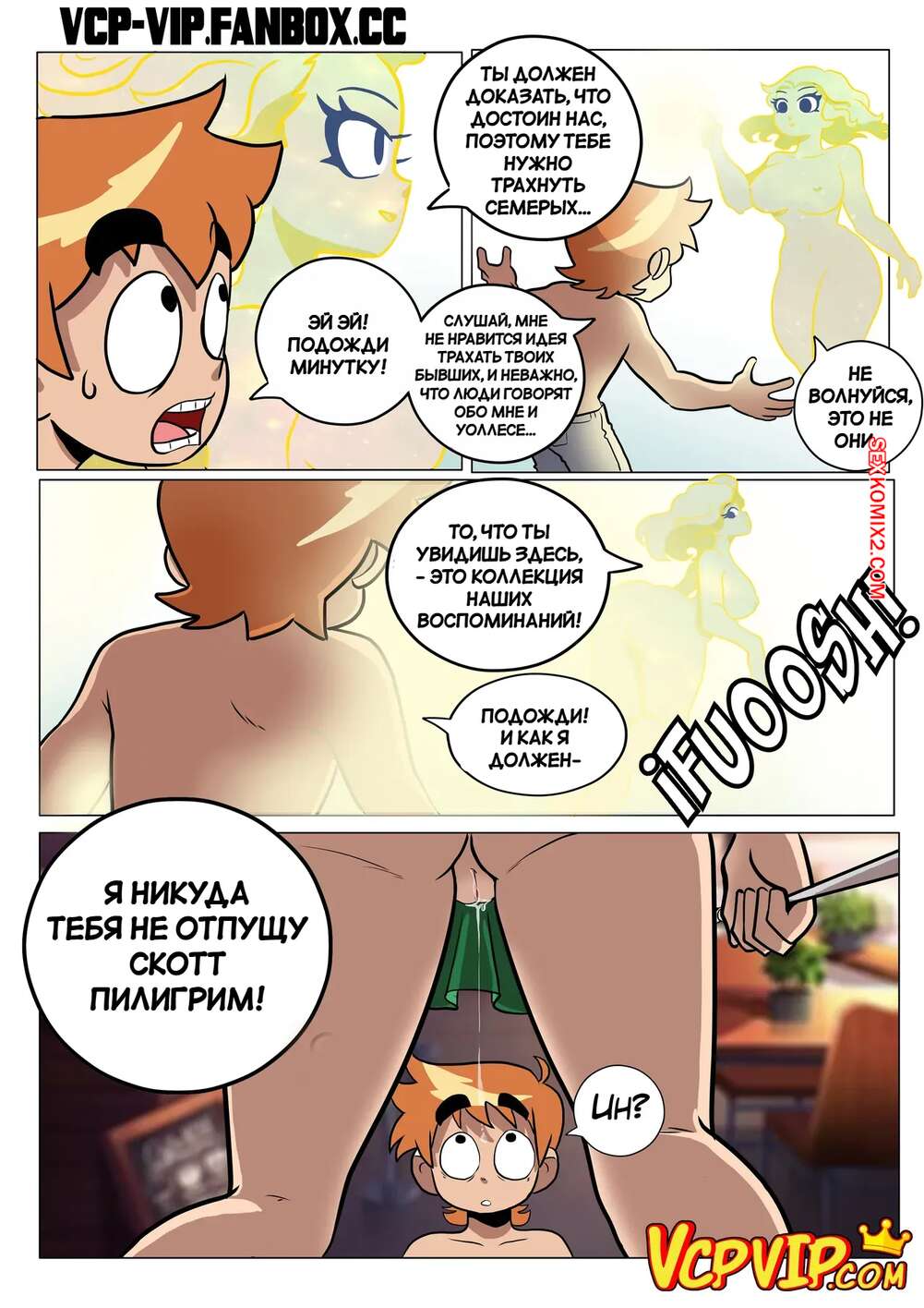 Порно комикс Scott Pilgrim vs. the World. Без уважения. No Respect. Gansoman Скотт соблазняет горячих красоток своим большим членом и девушки не могут устоять. Они раздеваются перед дружком и раздвигают ножки, после чего дают ему себя хорошенько выебать.