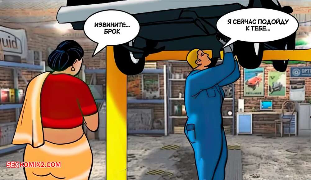 Порно комикс Веламма. Часть 42. Velamma. Velamma Горячая милфа привезла машину в ремонт и решила повеселиться с рабочим. Красотка встала на колени и стала сосать хуй мастера, после чего дала ему себя выебать во все дырочки.