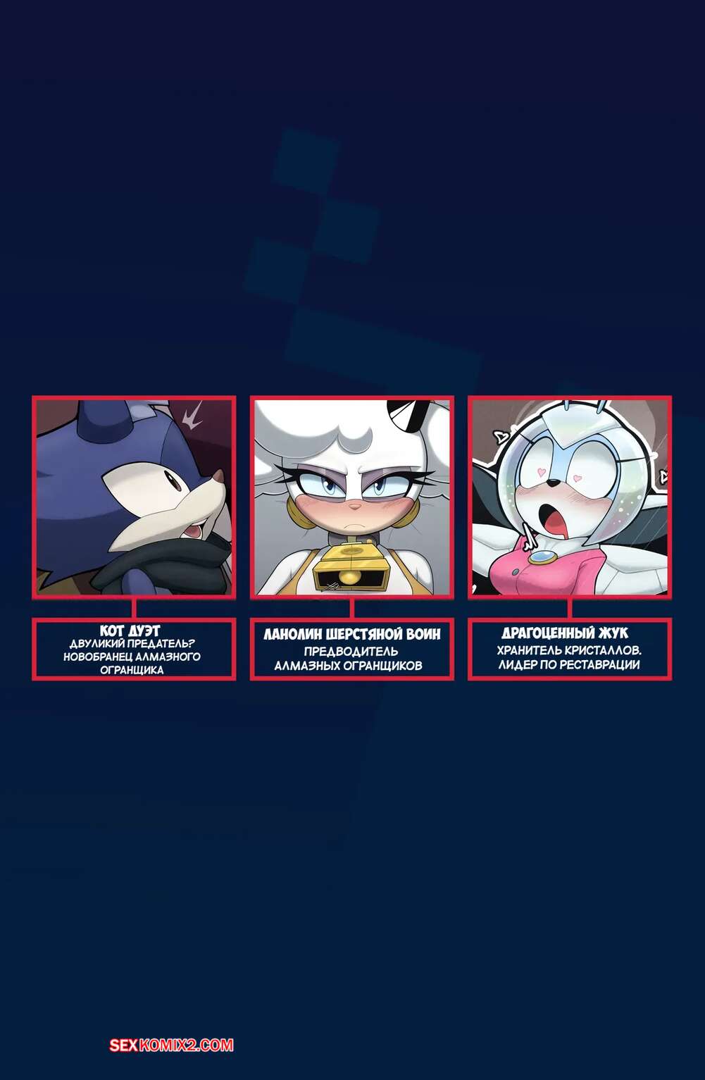 Порно комикс Соник. Нестареющая антология. Timeless Anthology. LazyiiDakkii. Горячая красотка была очень возбуждена и решила повеселиться с Соником. Она разделась и соблазнила его шикарным телом, после чего отсосала хуй парня и дала себя выебать.