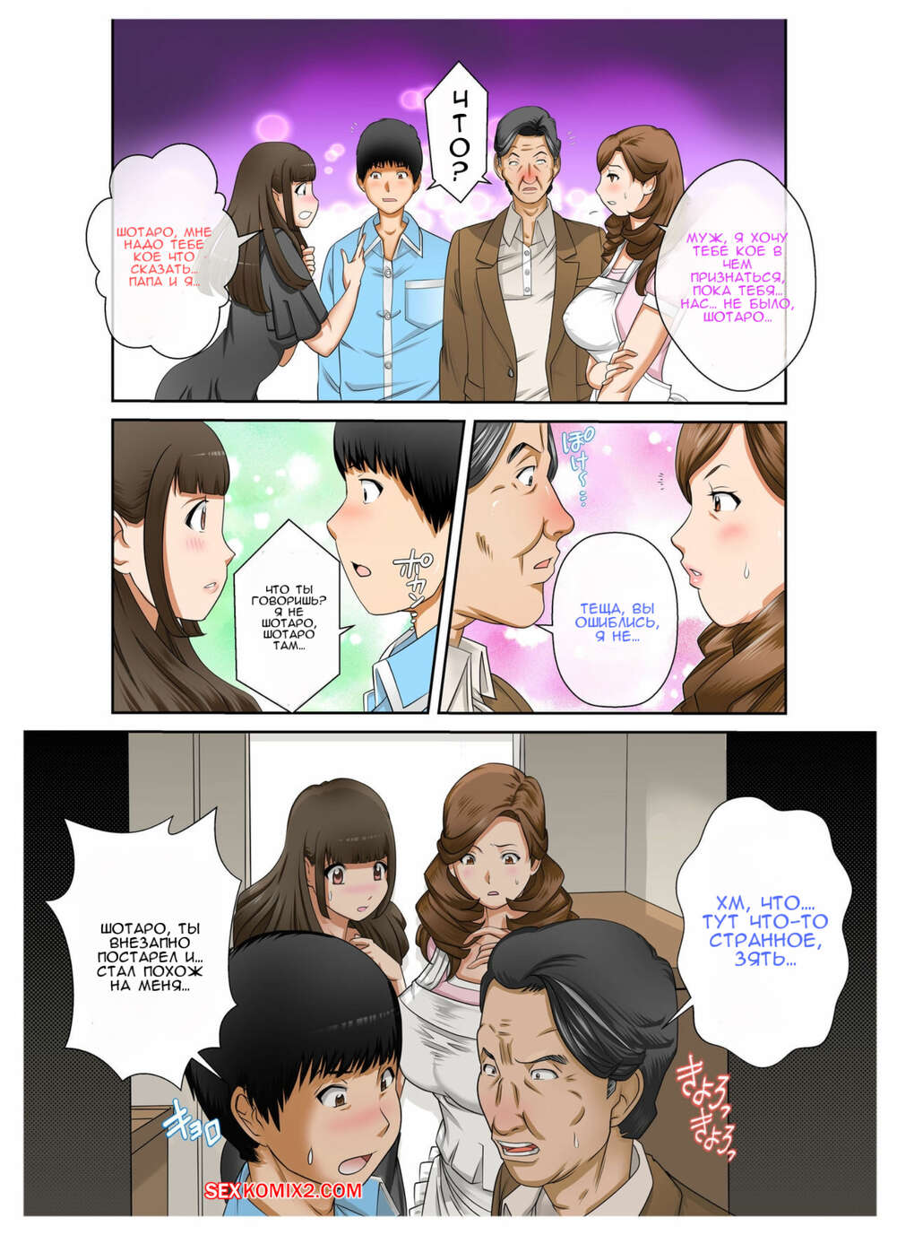 Порно комикс В один прекрасный день моя жена и тёща поменялись телами. Часть 3. fuuga Парень остался дома с горячей милфой и решил воспользоваться моментом. Он стал ласкать ее большие сиськи и пизденку, после чего хорошенько выебал ее большим хуем.