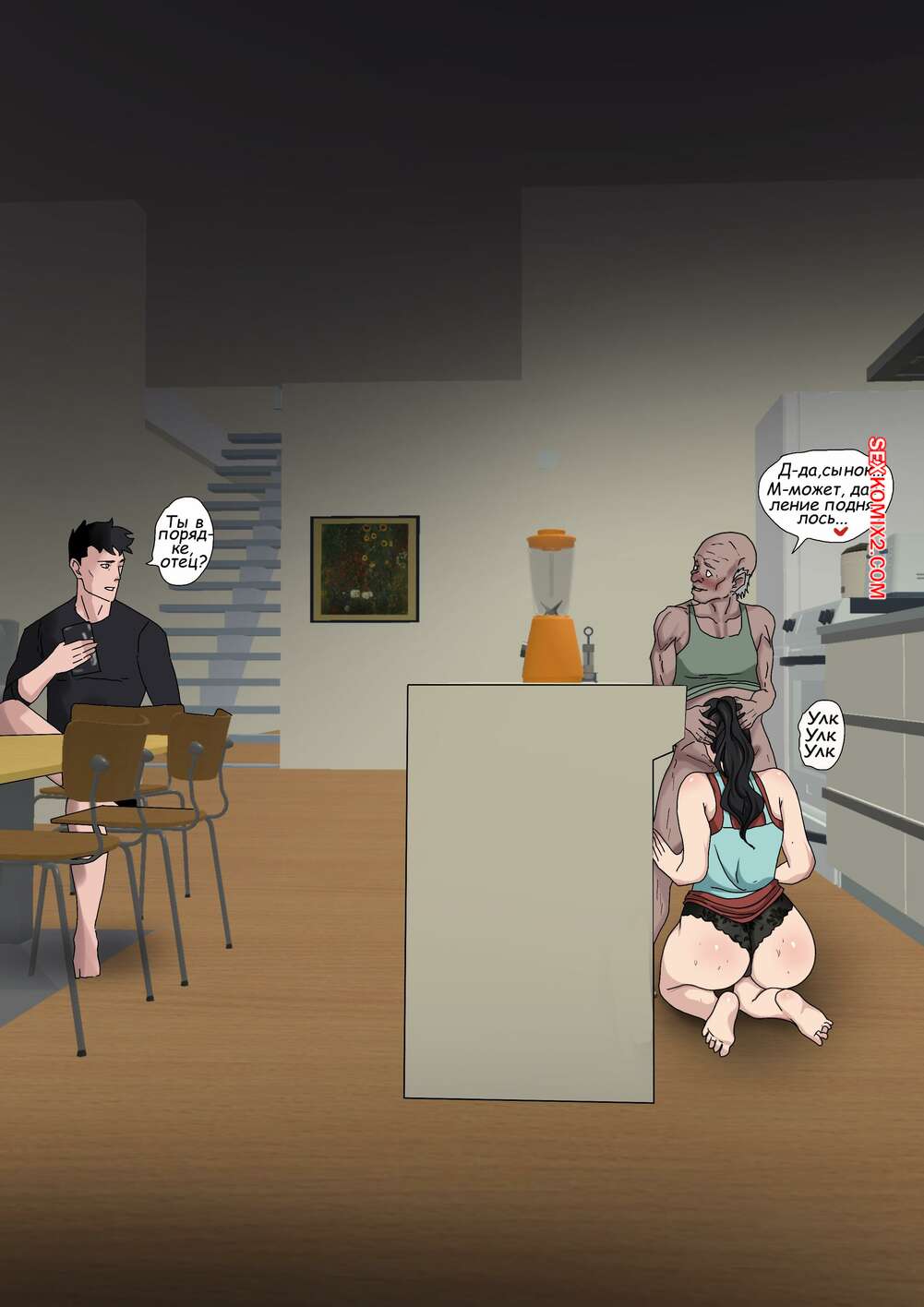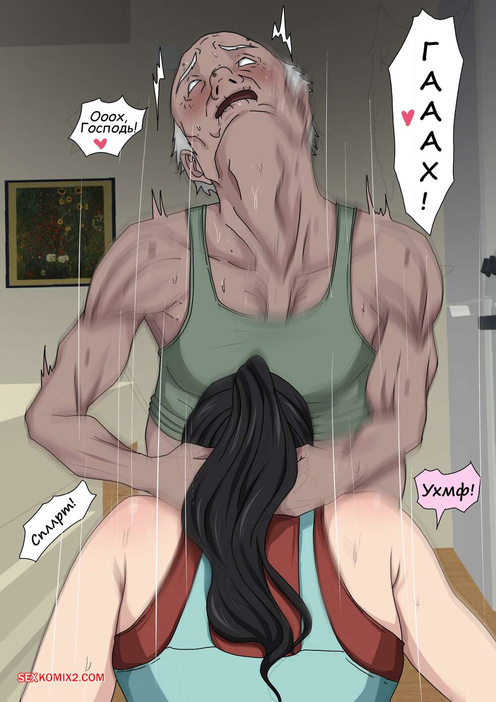 Порно комикс Греховная похоть. Часть 4.3. Sinful Lust Мерзкий старик остался дома с горячей брюнеткой и стал лапать ее задницу, желая соблазнить. Красотка встала на колени и отсосала черный хуй старика, после чего дала ему себя выебать.