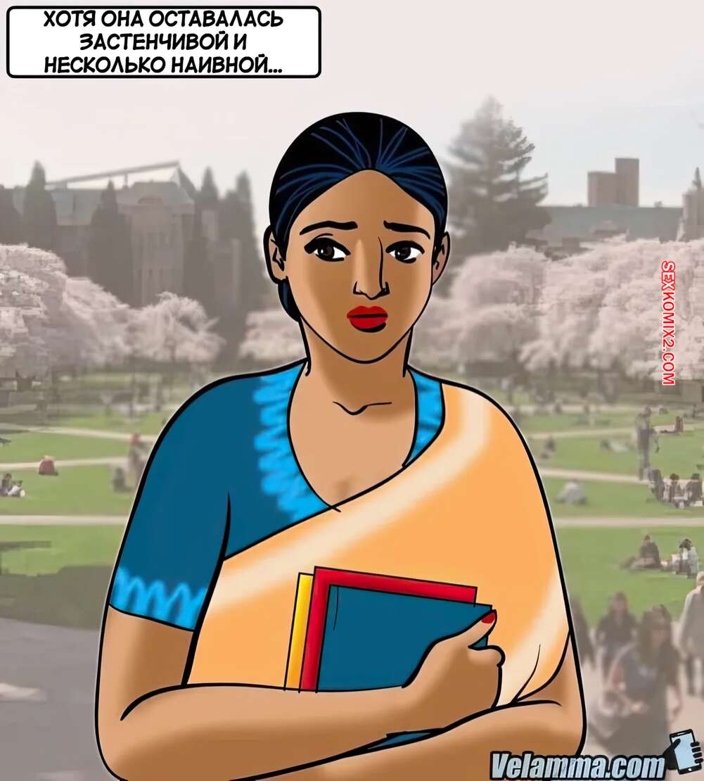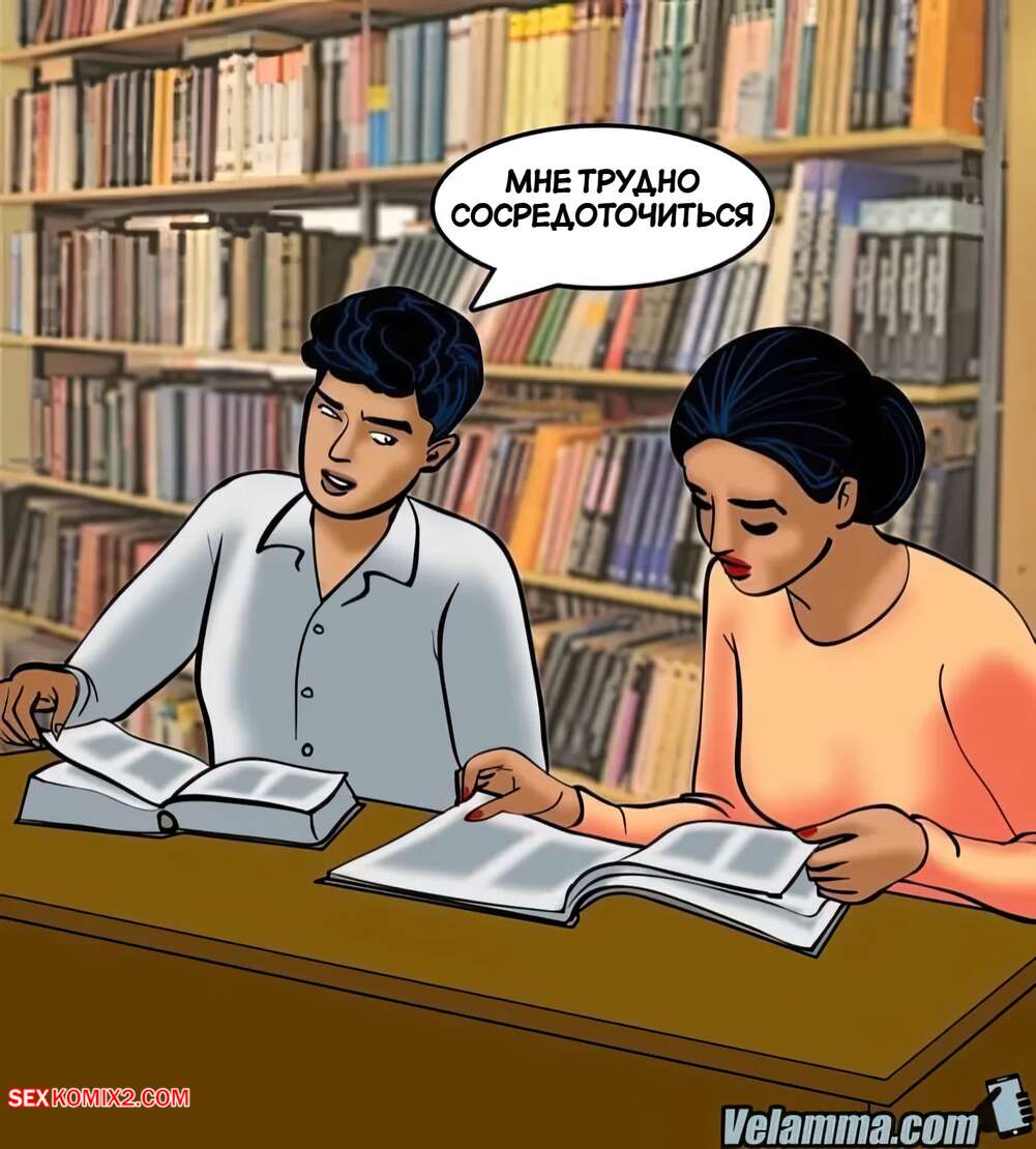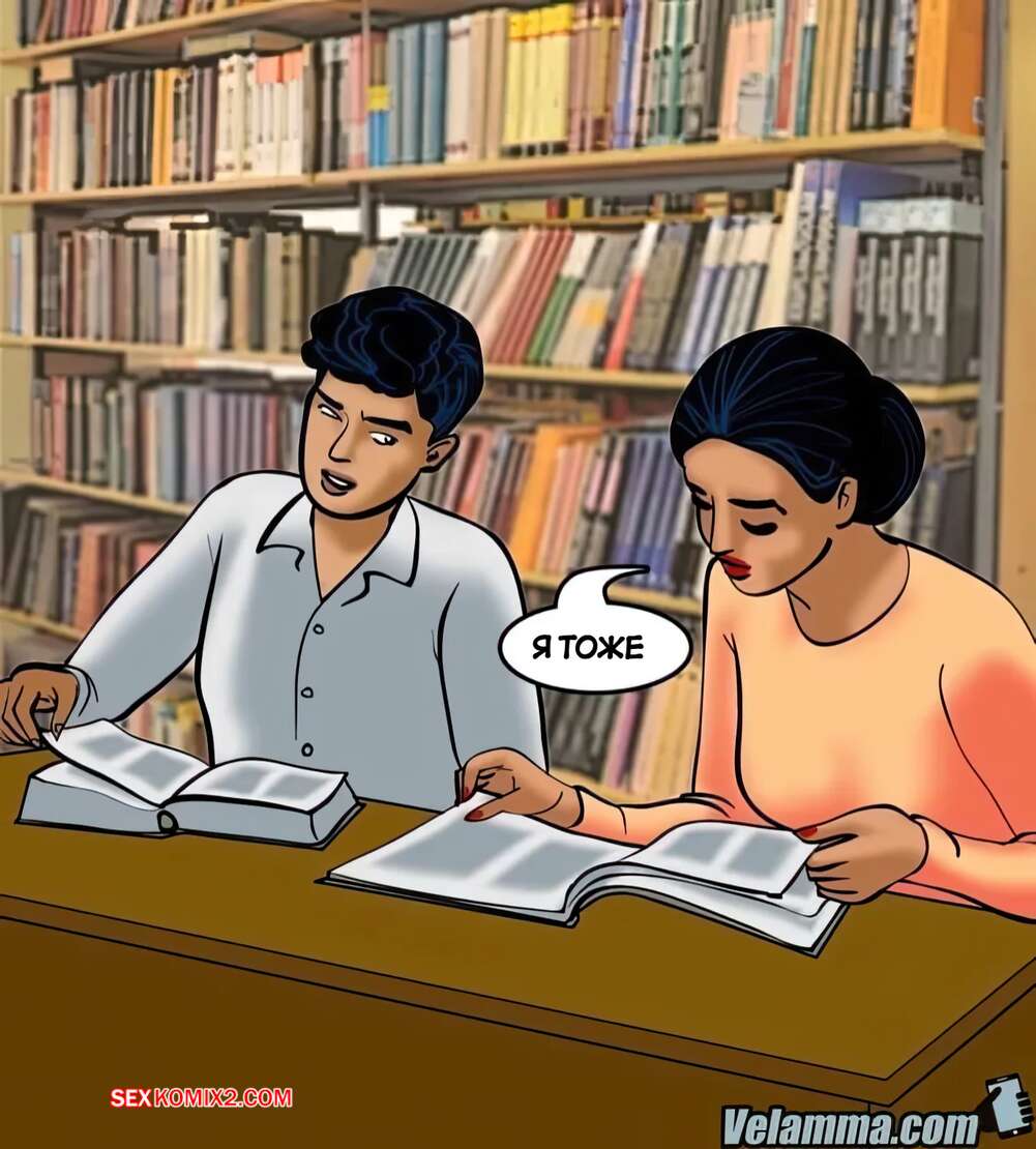 Порно комикс Веламма. Часть 70. Velamma. Velamma Горячая милфа Веламма пришла в библиотеку, где на нее положил глаз молодой парень. Он раздел красотку и дал ей отсосать свой большой хуй, после чего как следует выебал ее пизденку.
