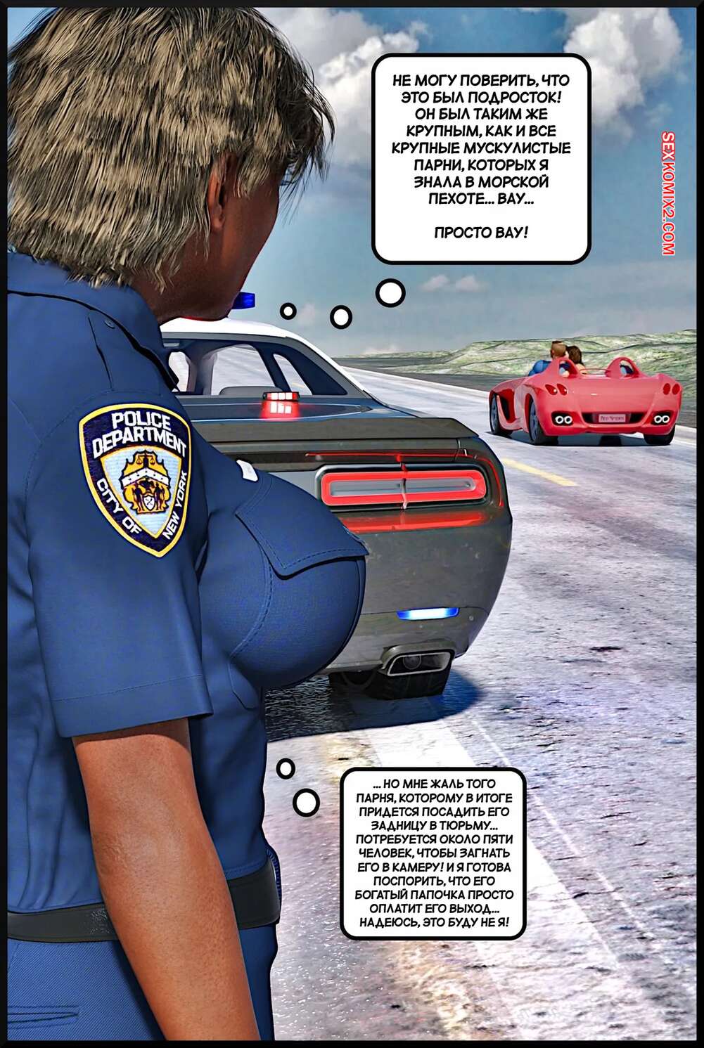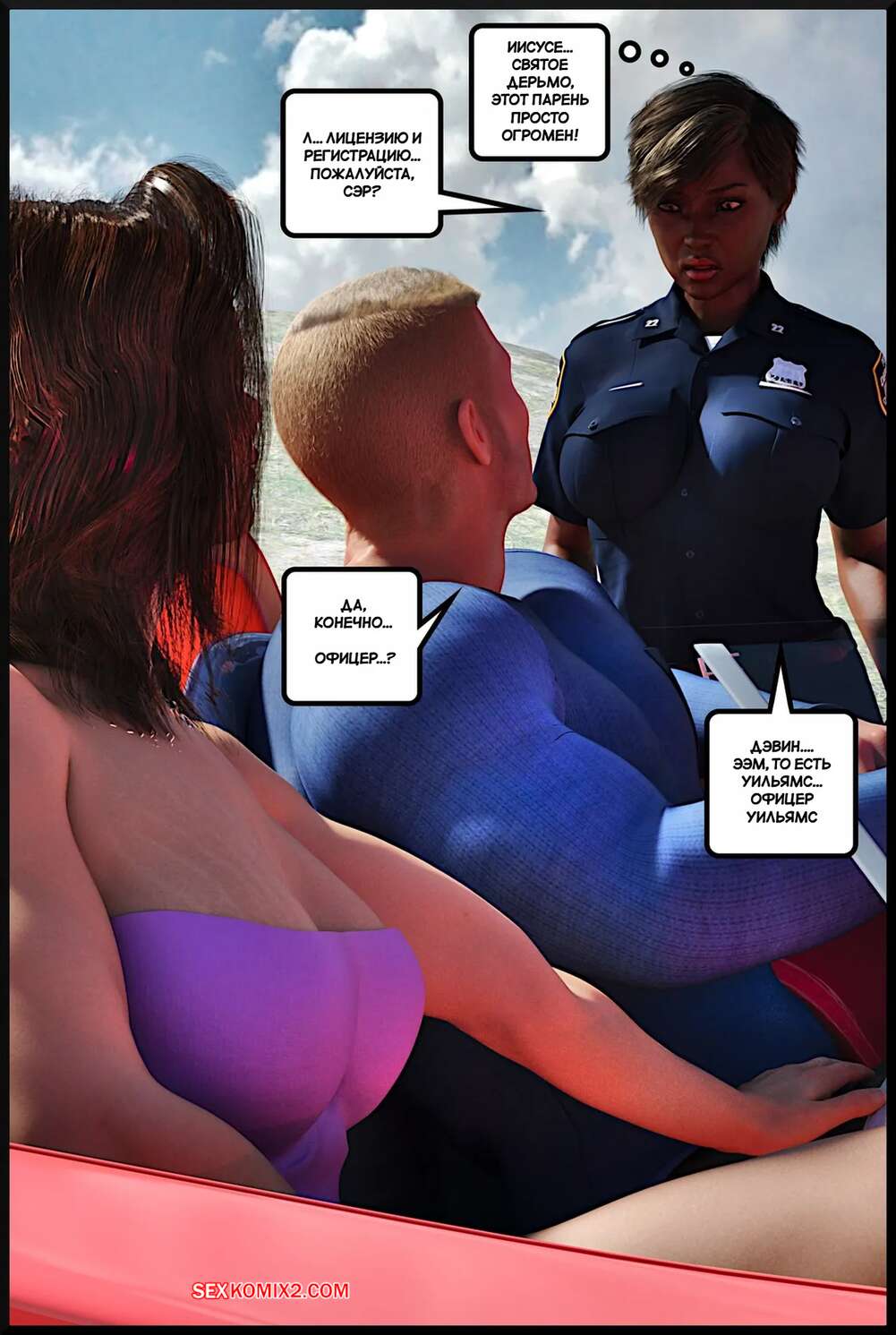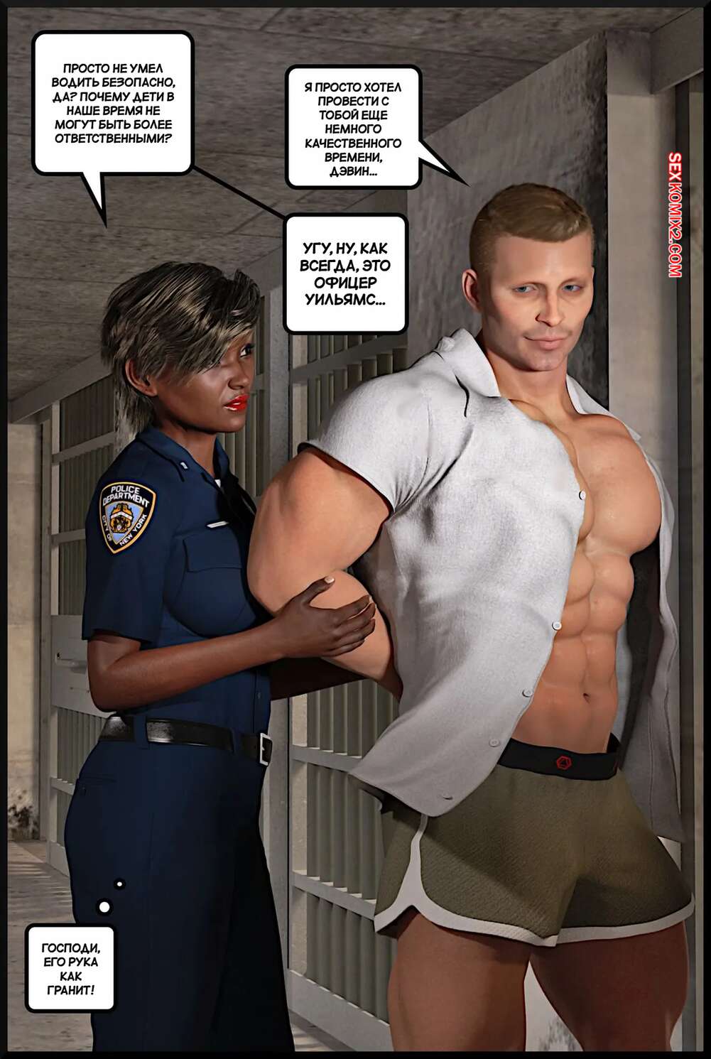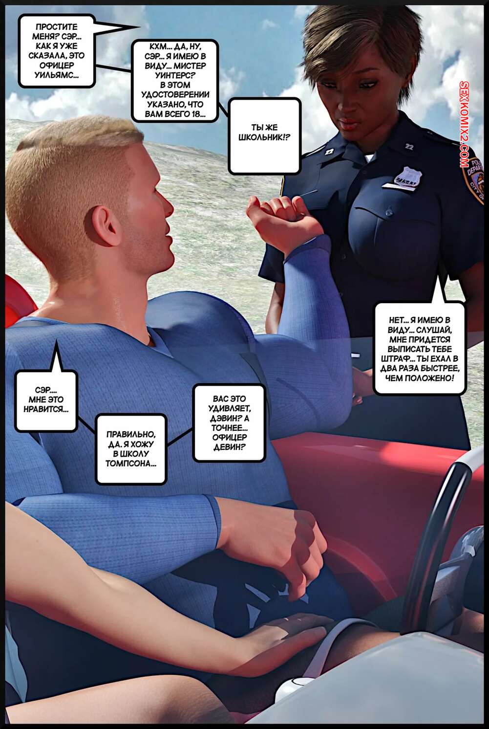 Порно комикс Подростковый жеребец. The Teen Stud. Alison Hale Темнокожая красотка арестовала парня и решила с ним повеселиться. Девушка разделась и стала сосать большой хуй паренька, после чего раздвинула ножки и дала ему себя выебать.