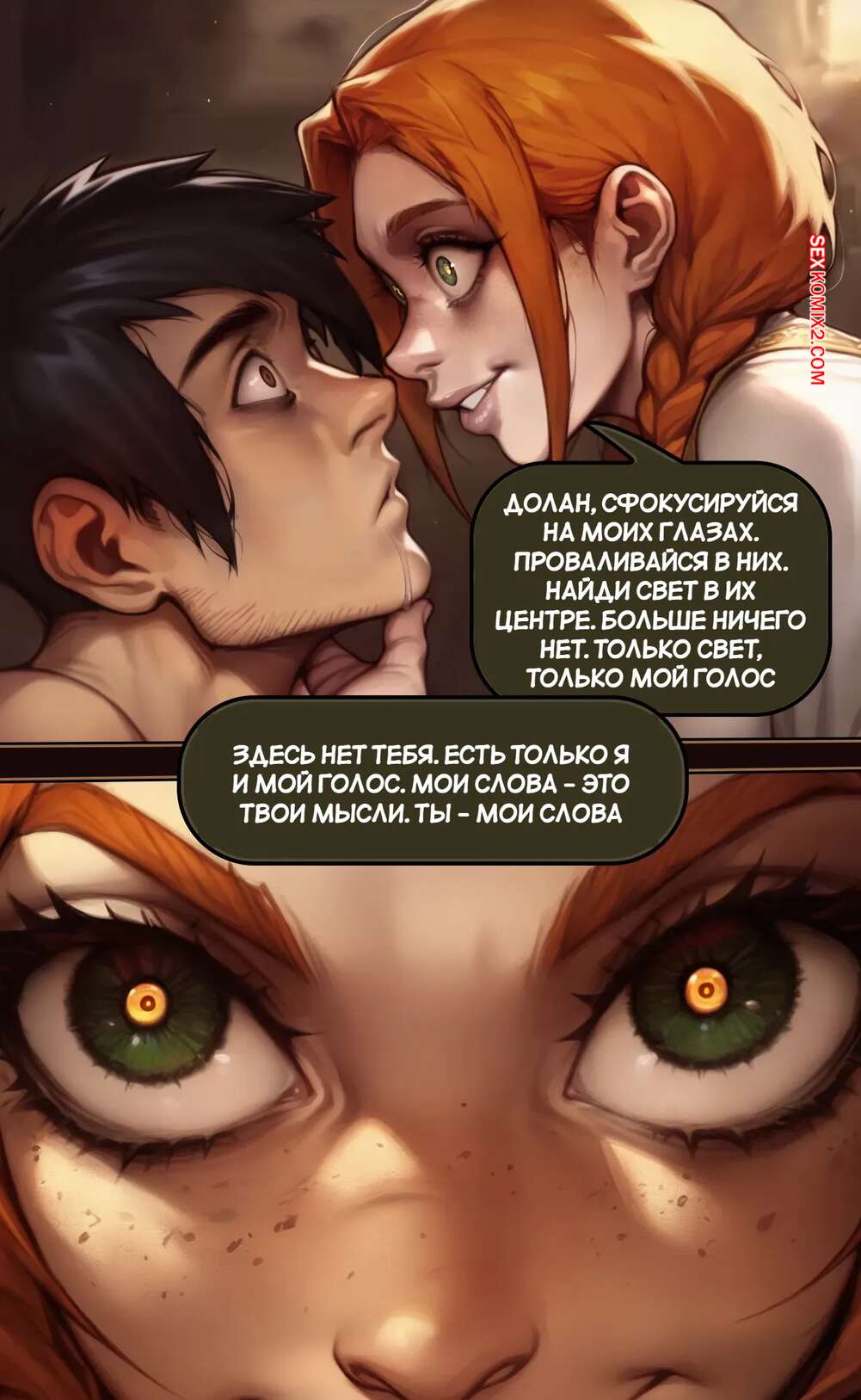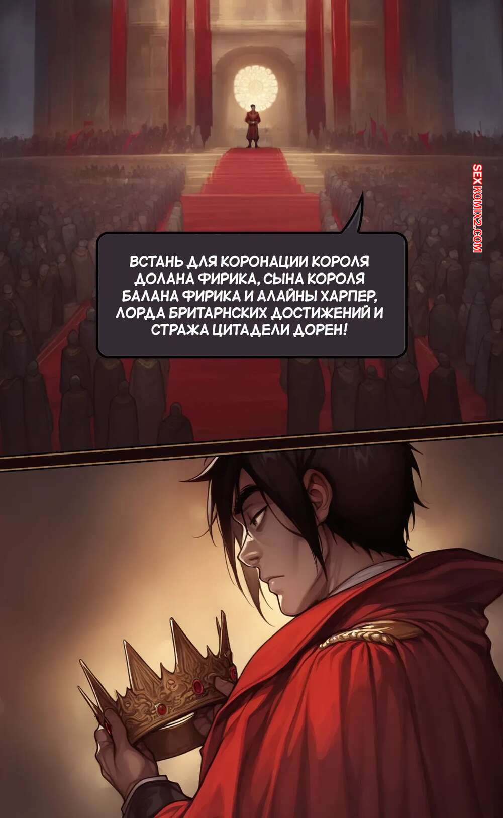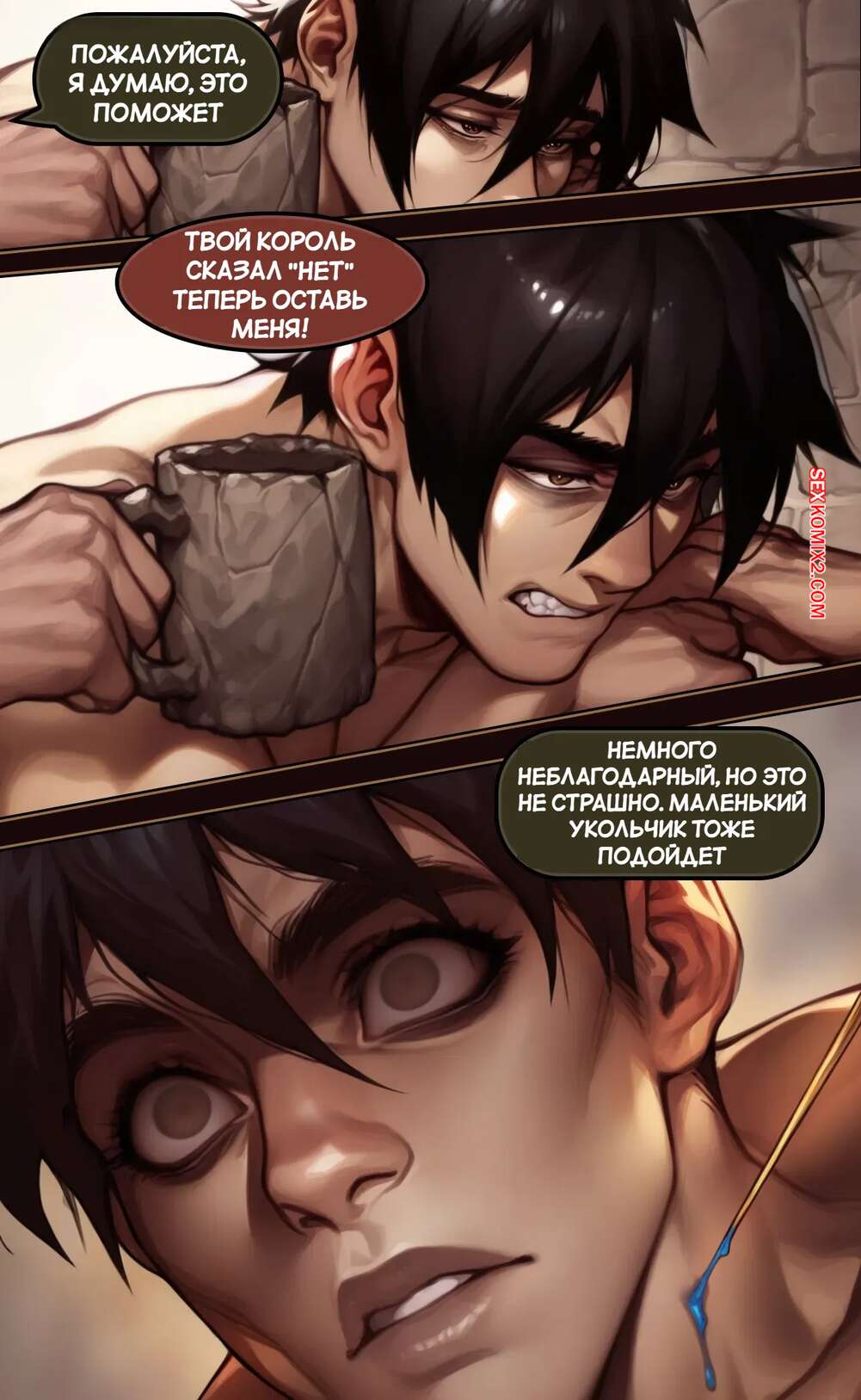 Порно комикс Убежище Харпера. Новый король. Harpers Keep. The new King Горячая брюнетка решила соблазнить нового короля, чтобы занять место на престоле. Она пришла к нему, пока она купался, и стала дрочить его хуй большими сиськами, предлагая королю жениться на ней.