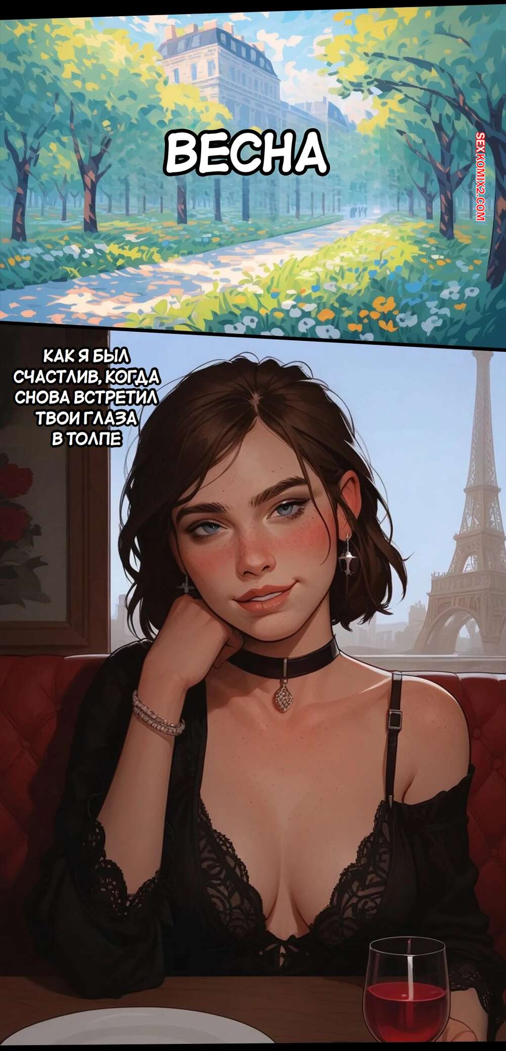Порно комикс Элли в Париже. Ellie in Paris. Zenit2cai Горячая брюнетка приехала в Париж, где познакомилась с парнем и не смогла устоять перед соблазном. Красотка разделась и отсосала большой хуй парня, после чего дала ему себя выебать и кончить в нее.