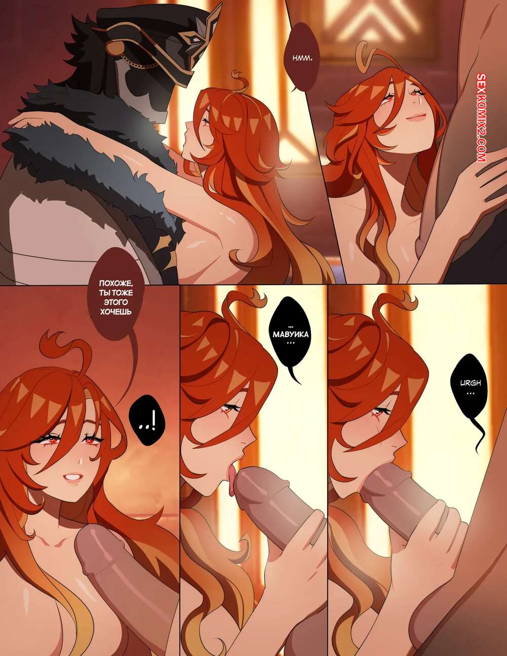 Порно комикс Genshin Impact. Равно подобранные. Evenly Matched. Creamboyo Рыжая красотка была очень возбуждена и решила повеселиться со своим дружком. Она разделась и отсосала его большой хуй, после чего раздвинула ножки и дала выебать свою пизденку, кончая в нее.