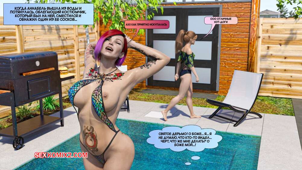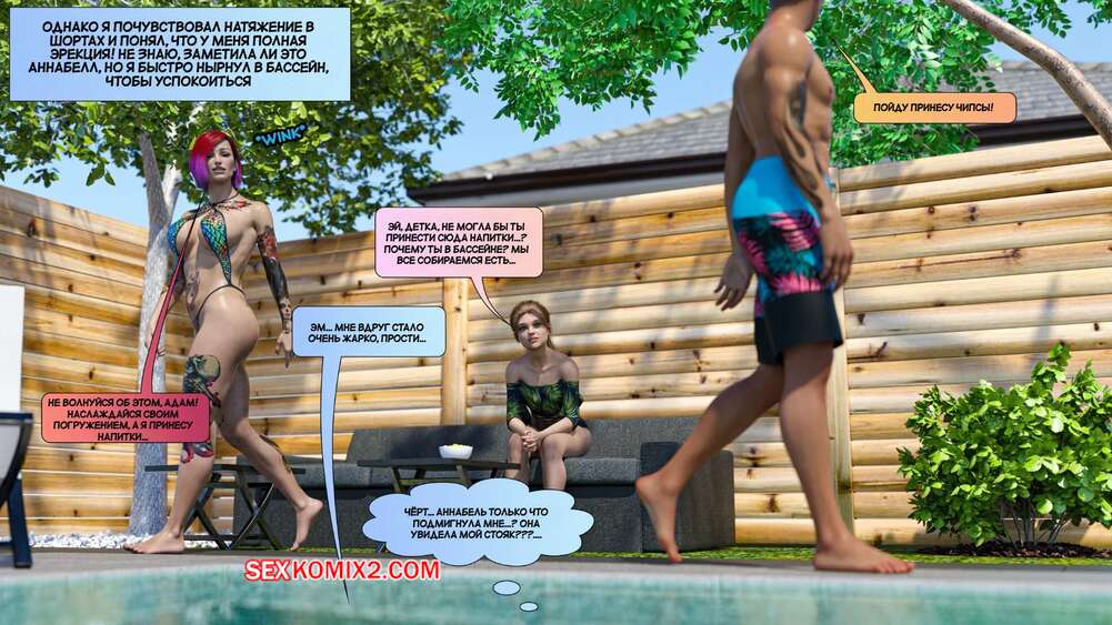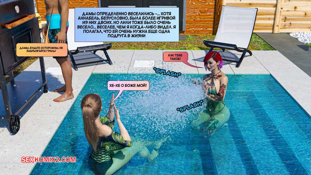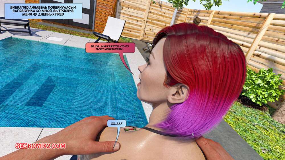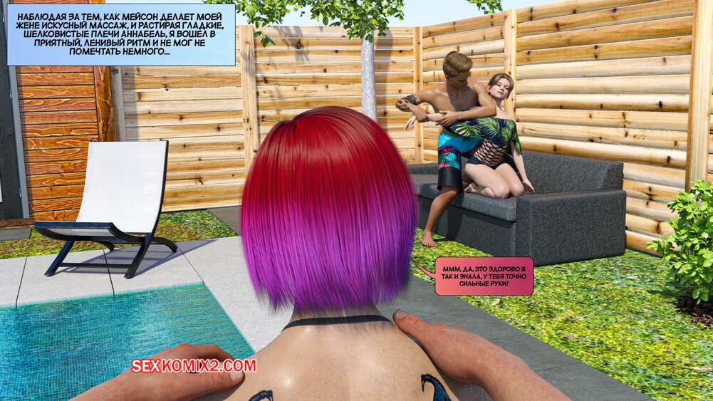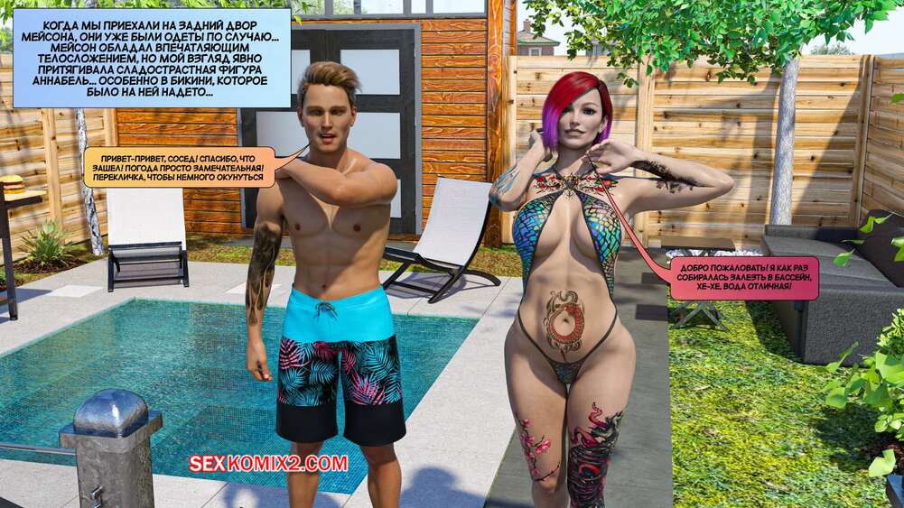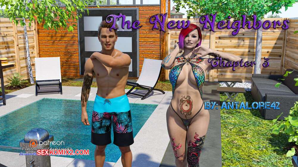Порно комикс Новые соседи. Часть 3. The New Neighbors. Antalore42 К парню и его жене пришли соседи, чтобы повеселиться у бассейна. Аннабель попросила паренька помять ей плечи, а он стал представлять, как милфа сосет его член и дает себя трахнуть.