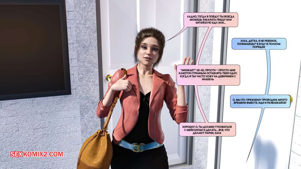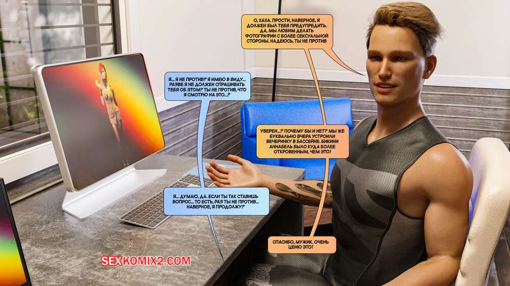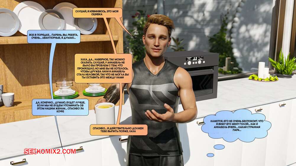 Порно комикс Новые соседи. Часть 4. The New Neighbors. Antalore42 Анабель пригласила Адама к себе и показала ему свои фото в нижнем белье. Парнишка сильно возбудился и отправился домой к своей жене, чтобы трахнуть ее и выпустить пар.